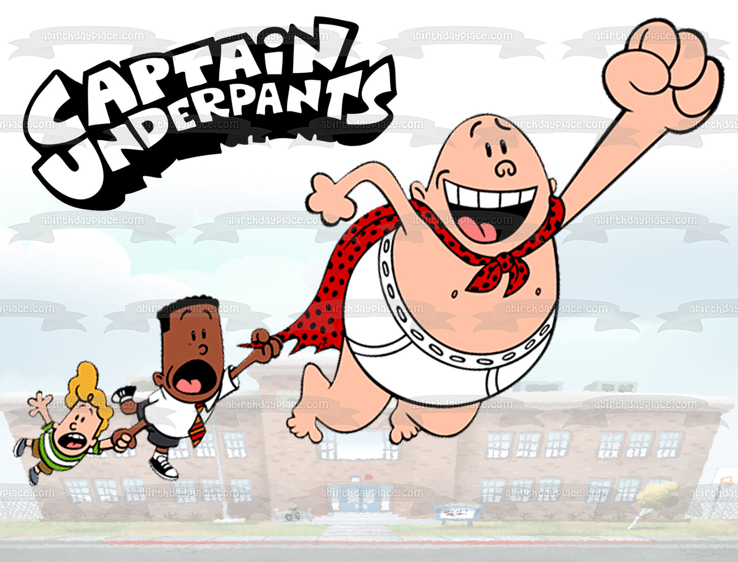 Captain Underpants Flying Past School Children's Book Series Edible Cake Topper Image ABPID53707