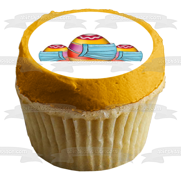 Decorate your Cake with this Happy Easter themed Edible Cake Topper Image featuring Eggs with Masks!