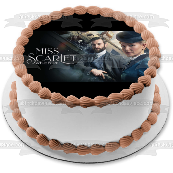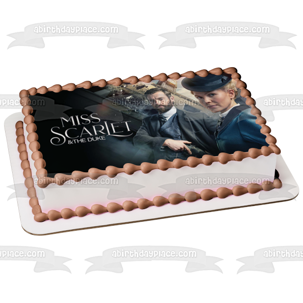 Decorate your Cake with this Miss Scarlet and the Duke themed Edible Cake Topper Image featuring Eliza Scarlet and Detective Inspector William Wellington, The Duke!