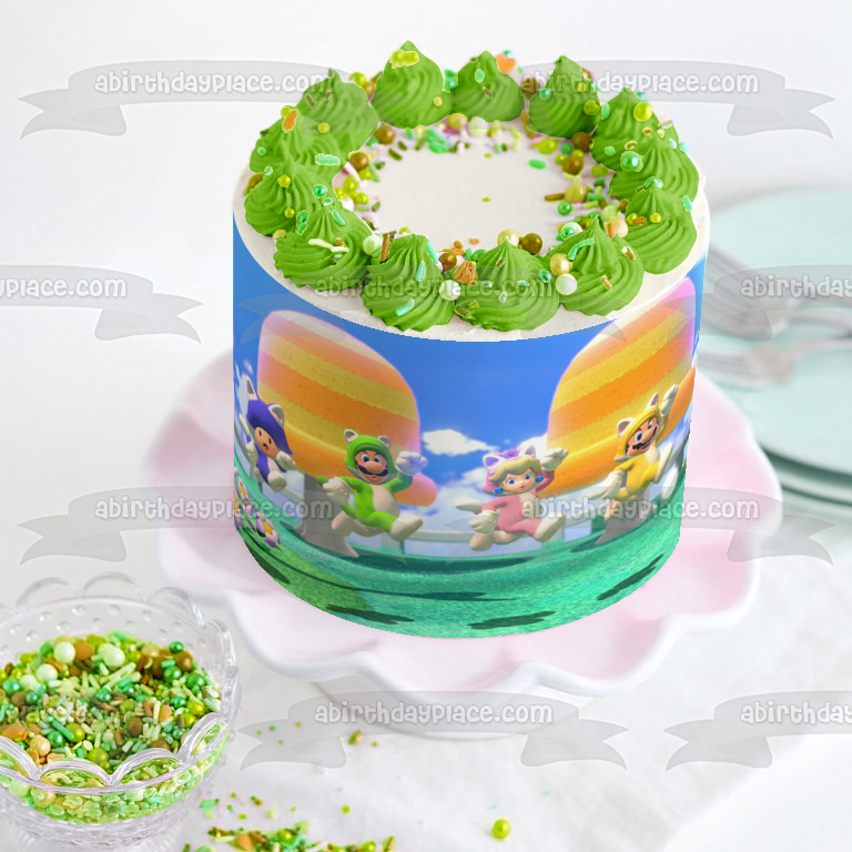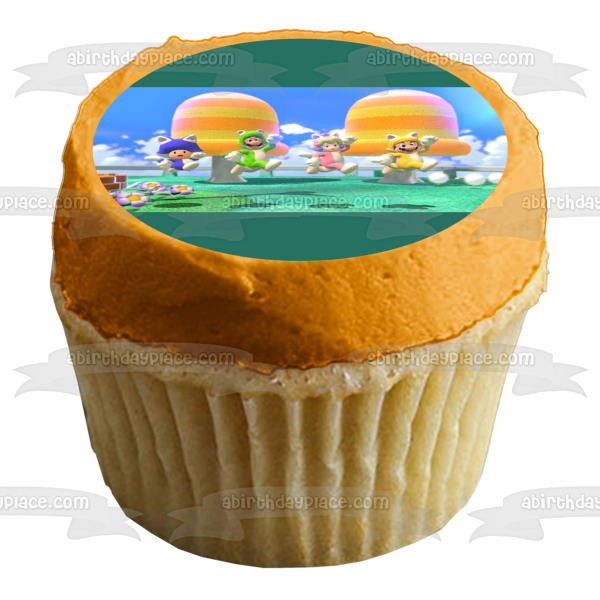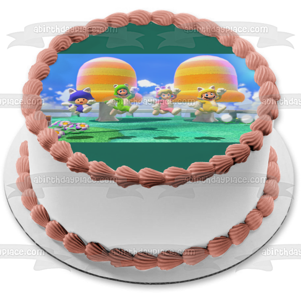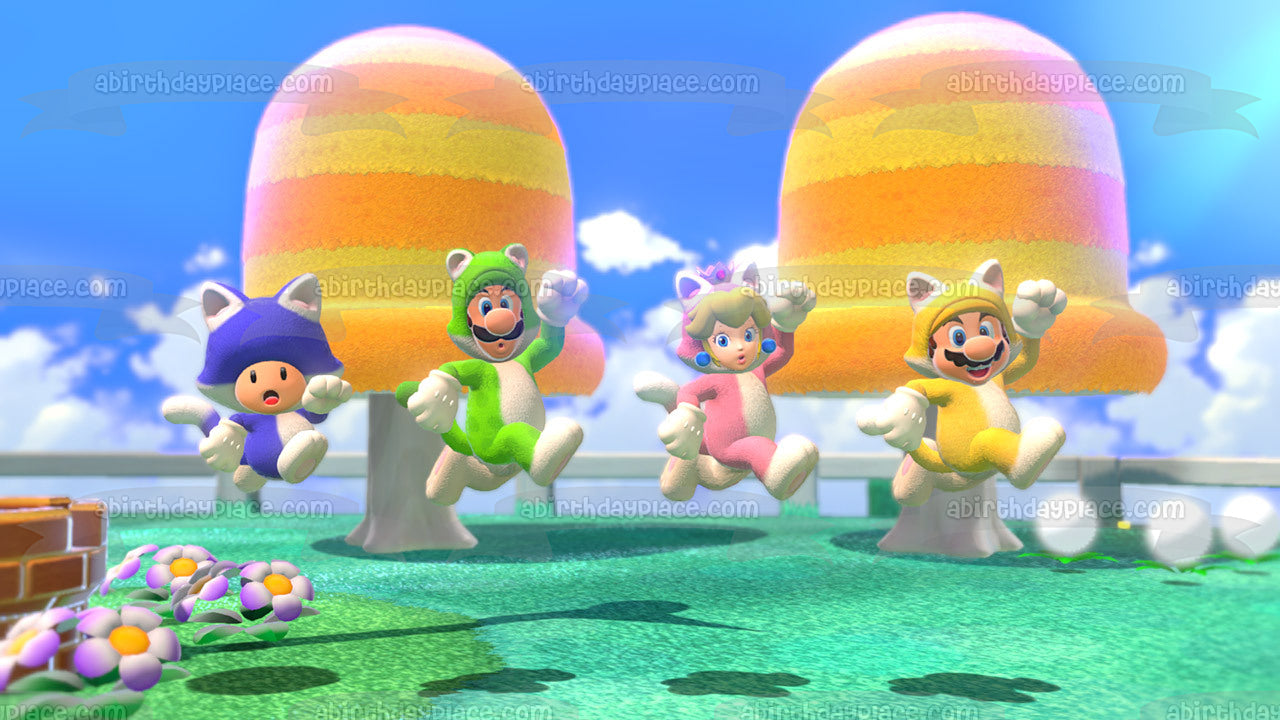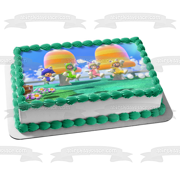 Decorate your Cake with this Super Mario 3D World themed Edible Cake Topper Image featuring Toad, Luigi and Princess Peach!