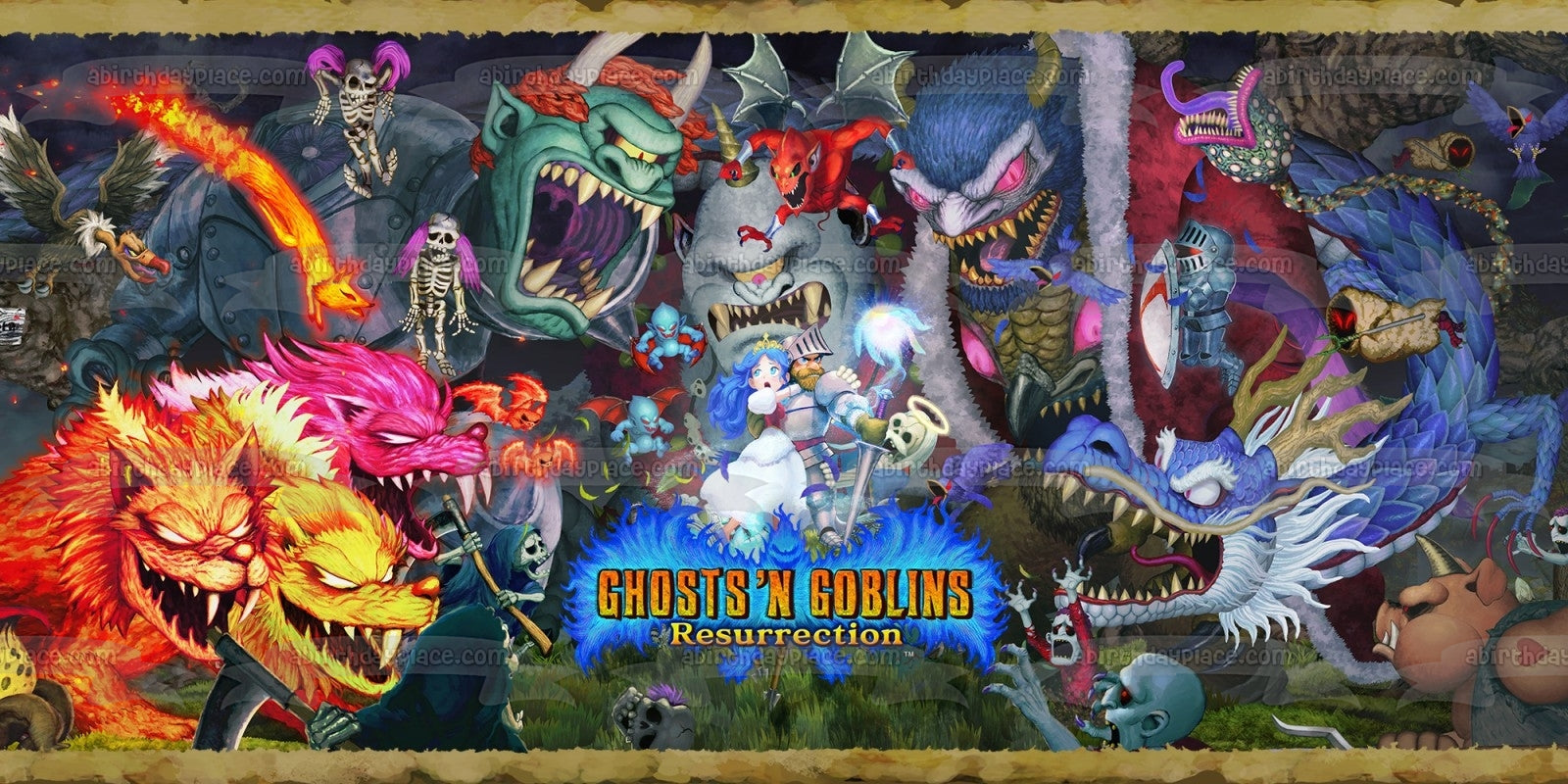 Decorate your Cake with this Ghosts N' Goblins Resurrection themed Edible Cake Topper Image featuring Princess and Arthur!
