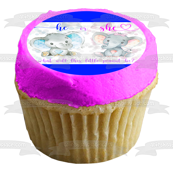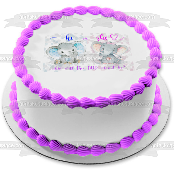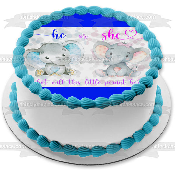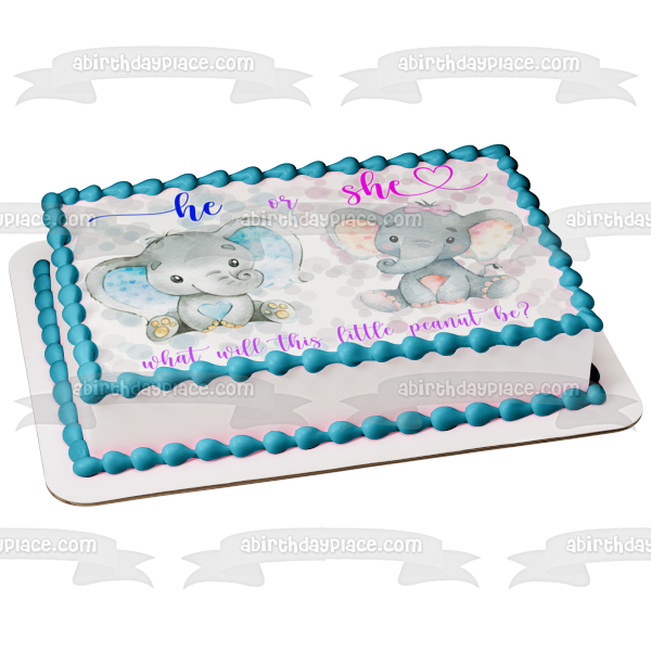 He or She What Will This Little Peanut Be? Gender Reveal Baby Shower Edible Cake Topper Image ABPID54019