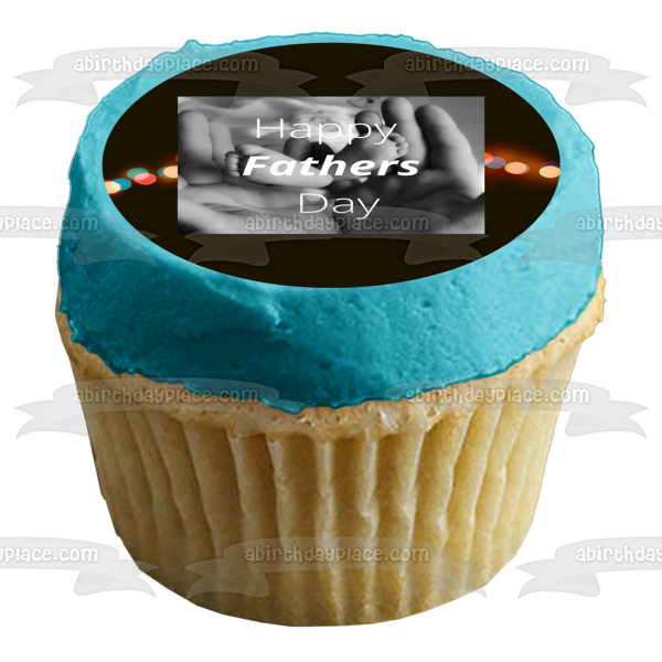 Decorate your Cake with this Happy Father's Day themed Edible Cake Topper Image featuring a Father's Hands and Baby's Feet!