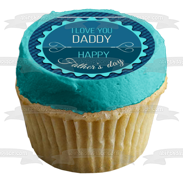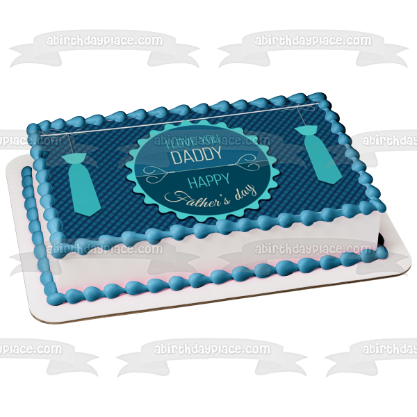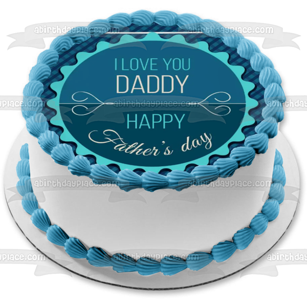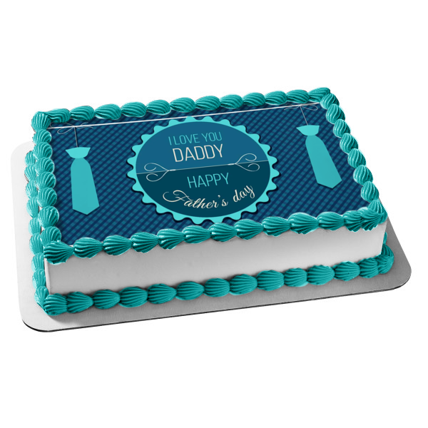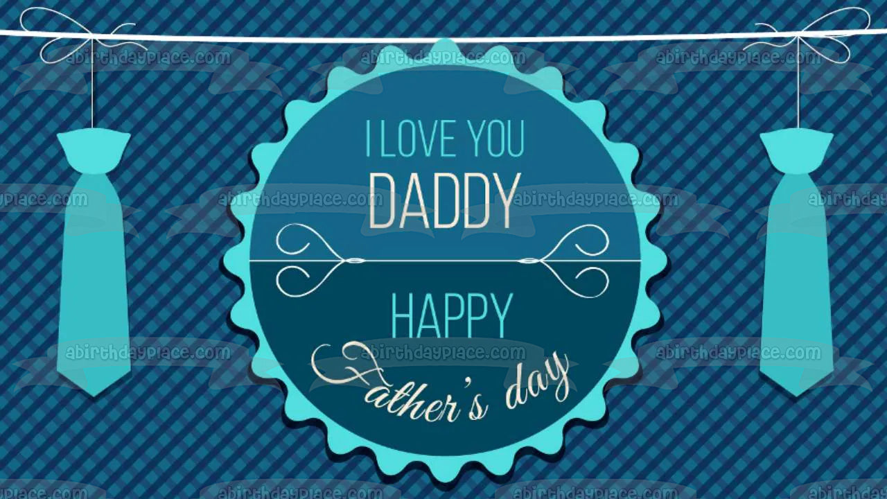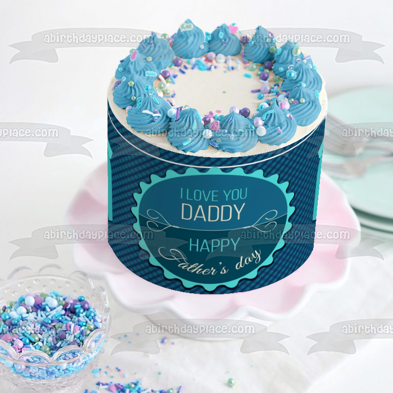 Decorate your Cake with this Happy Father's Day themed Edible Cake Topper Image featuring the words I Love You Daddy!