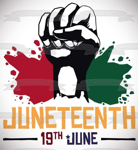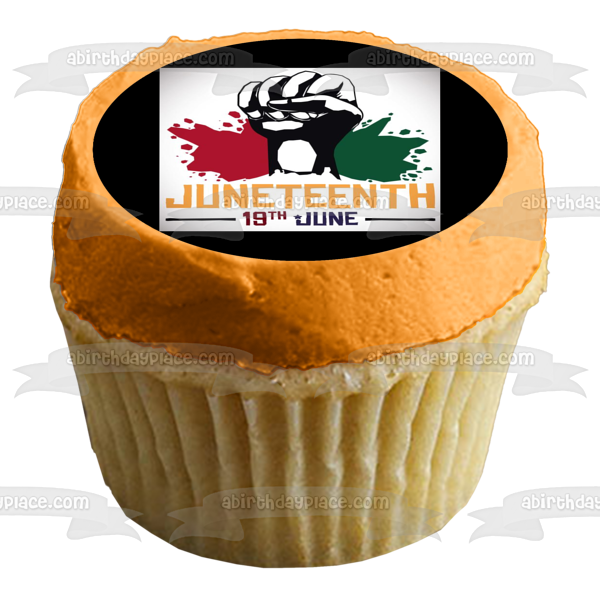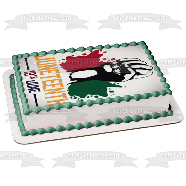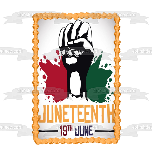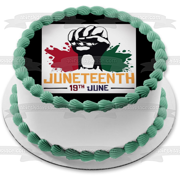Decorate your Cake with this Juneteenth Freedom Day themed Edible Cake Topper Image featuring a Fist and June 19th!