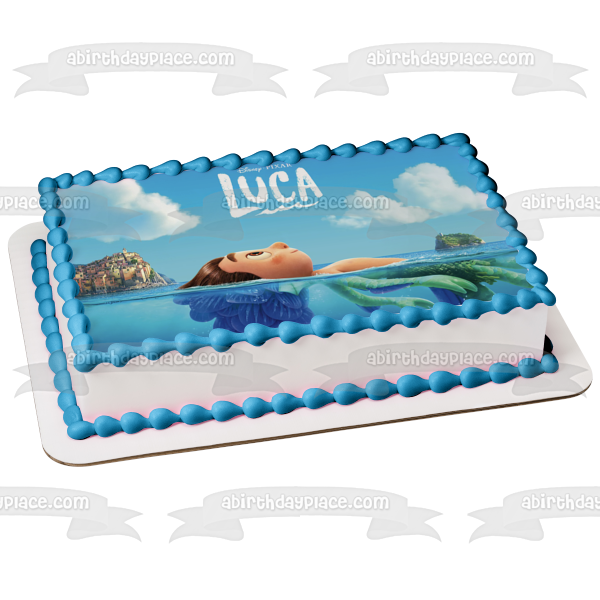 Decorate your Cake with this Luca themed Edible Cake Topper Image featuring Luca swimming!