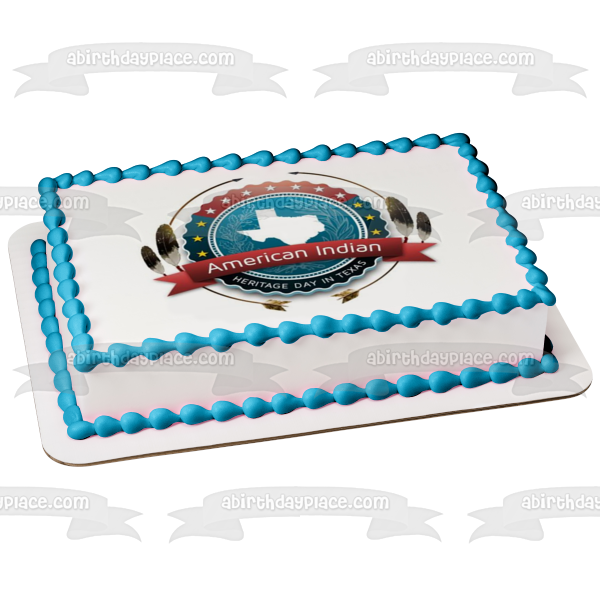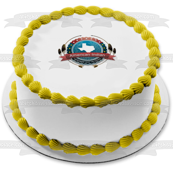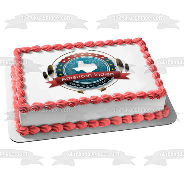Decorate your Cake with this American Indian Heritage Day in Texas themed Edible Cake Topper Image featuring the Texas State Seal!
