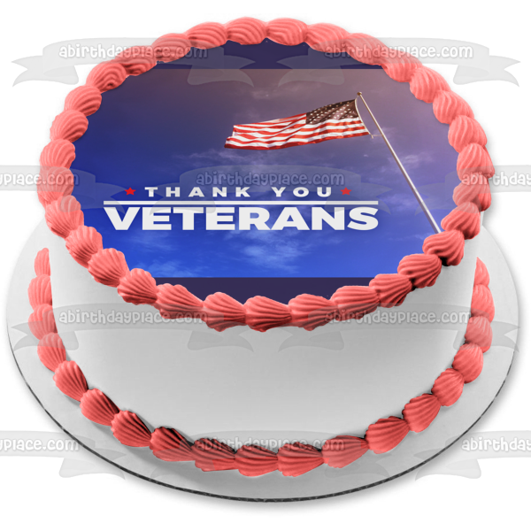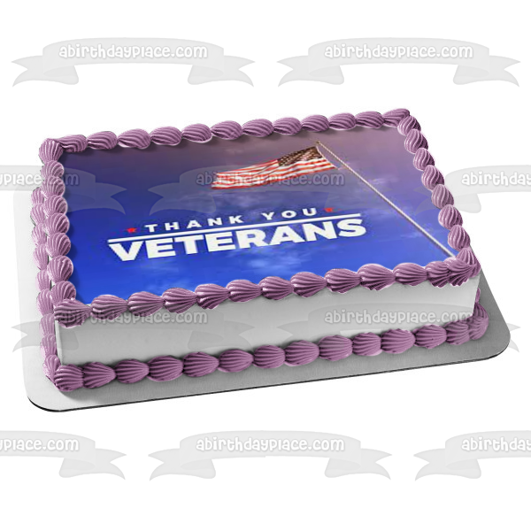 Decorate your Cake with this Thank You Veterans themed Edible Cake Topper Image featuring the American Flag!