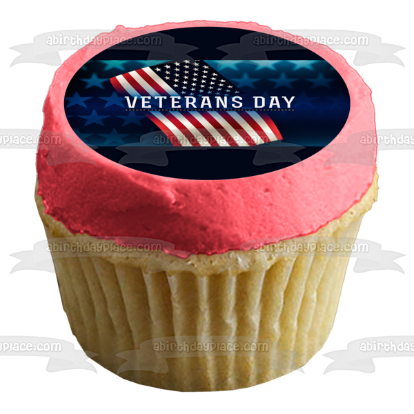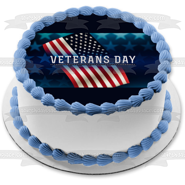Decorate your Cake with this Veterans Day themed Edible Cake Topper Image featuring the American Flag!