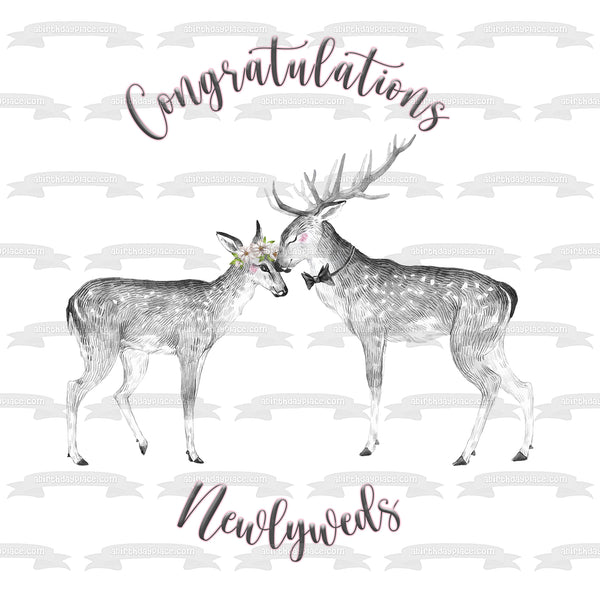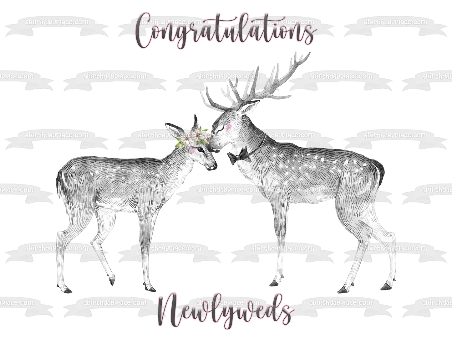 Decorate your Cake with this Woodland Love themed Edible Cake Topper Image featuring a Doe and Buck!