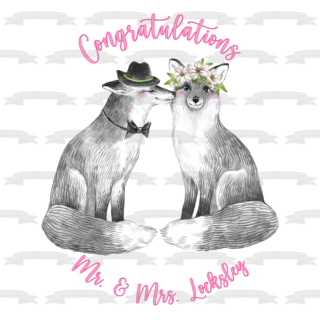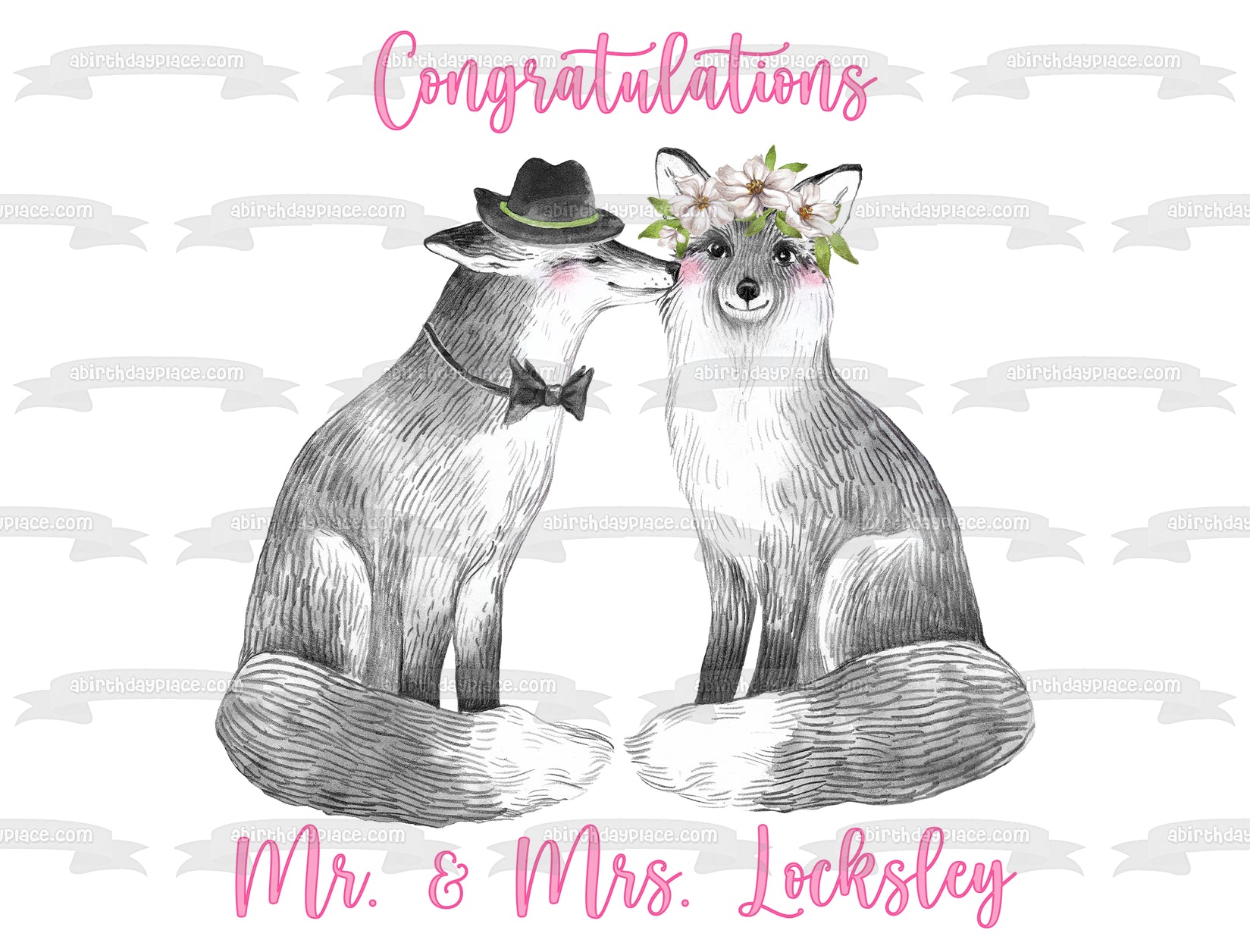 Decorate your Cake with this Woodland Love themed Edible Cake Topper Image featuring Foxes with Flowers!