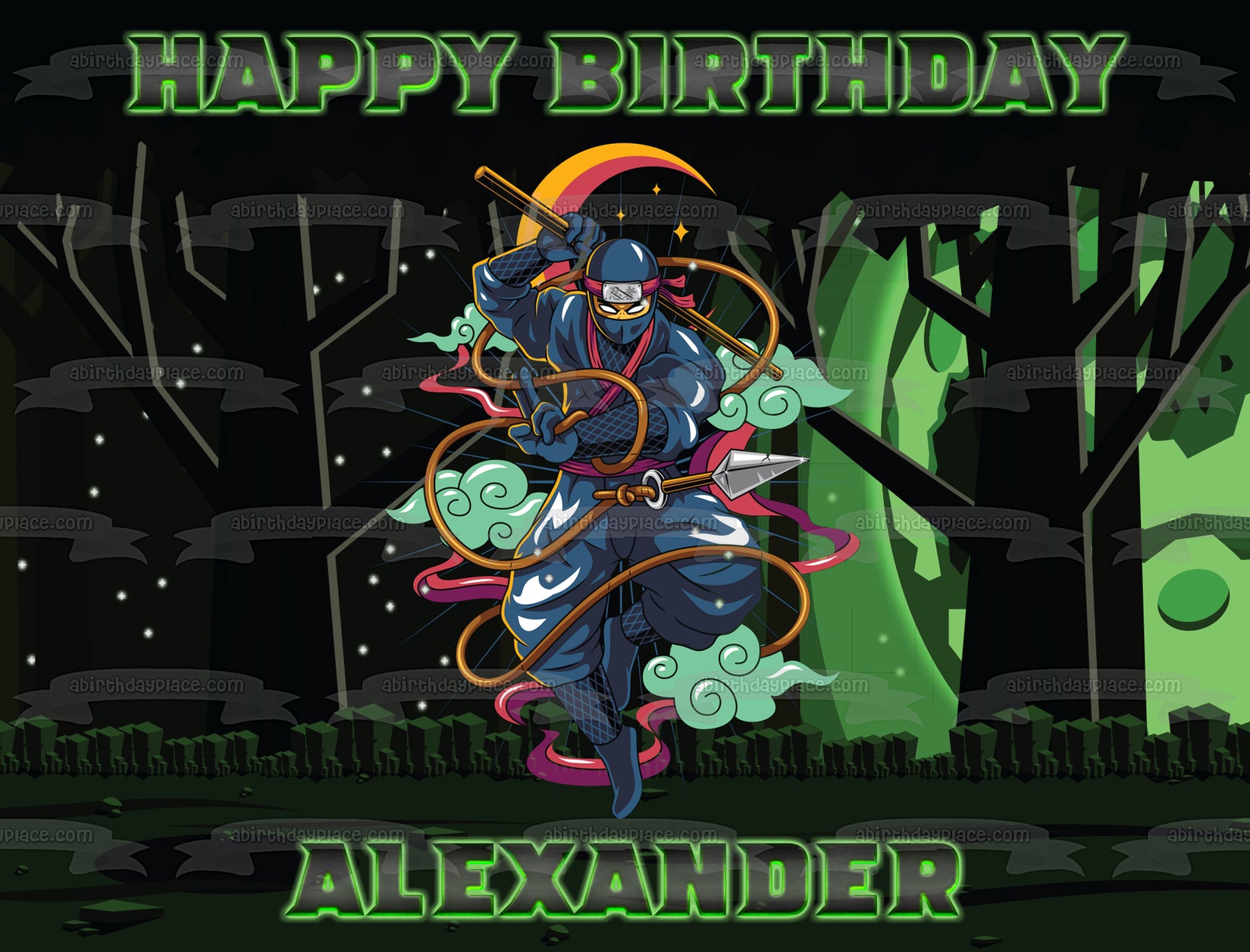 Decorate your Cake with this Ninja Night Scene themed Edible Cake Topper Image!