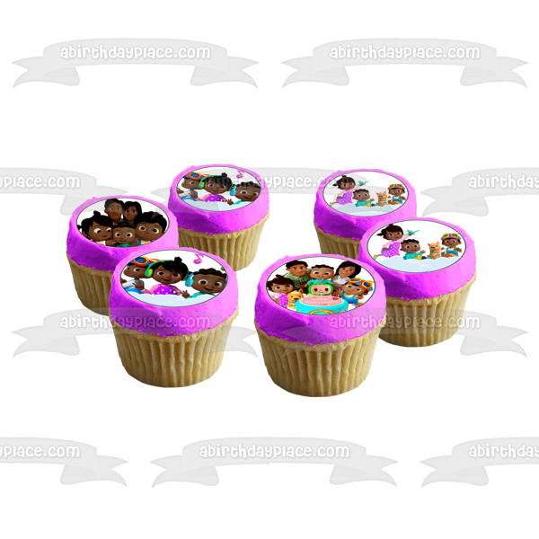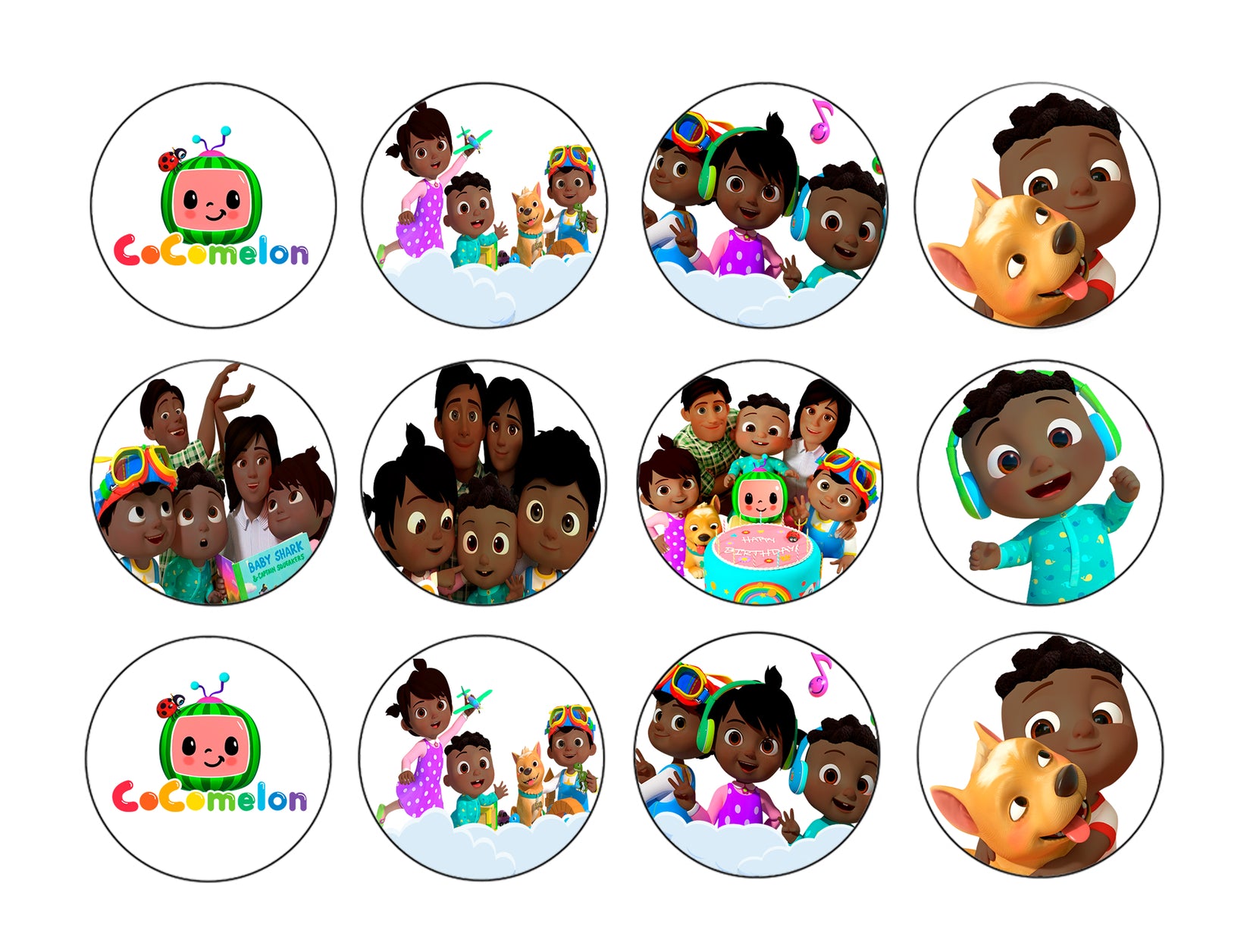 Decorate your Cupcakes with these Multiracial Cocomelon Families themed Edible Cupcake Topper Images featuring Baby JJ Chevron!