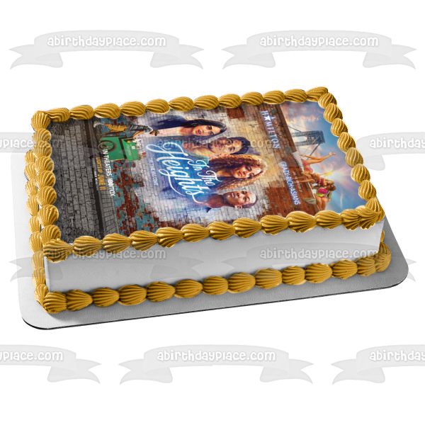 Decorate your Cake with this In the Heights themed Edible Cake Topper Image featuring the Movie Poster with Usnavi De La Vega, Nina, Vanessa and Benny!