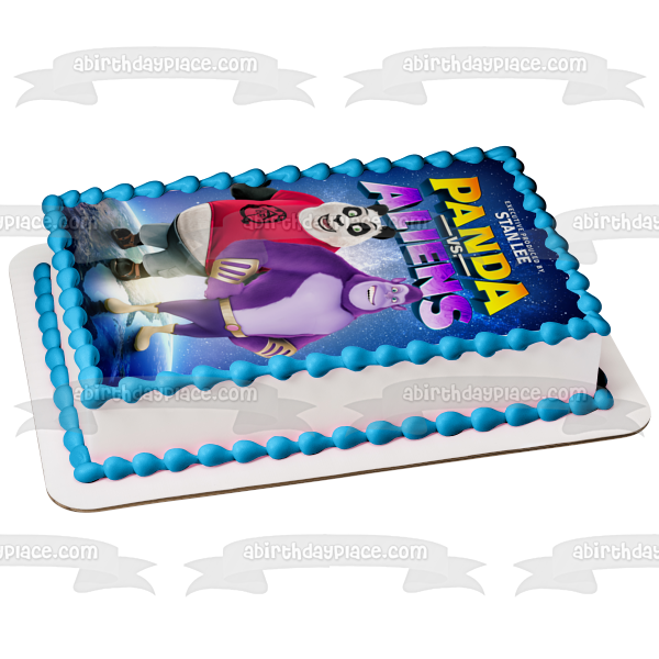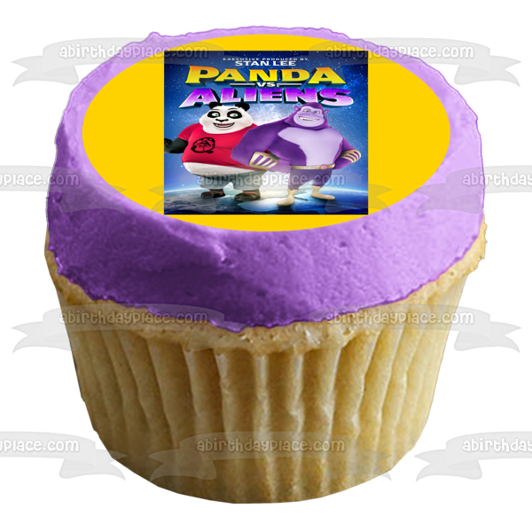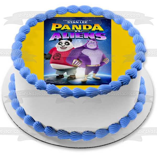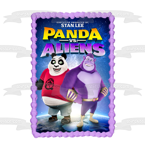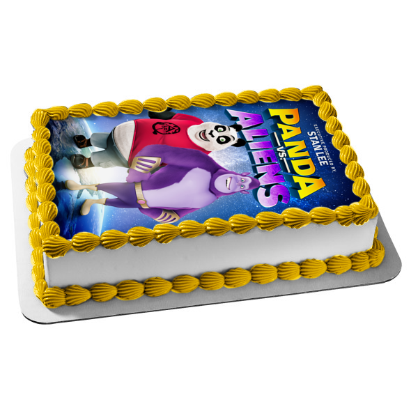 Decorate your Cake with this Panda Vs. Aliens themed Edible Cake Topper Image featuring Pandy and Bruno on the Movie Poster!