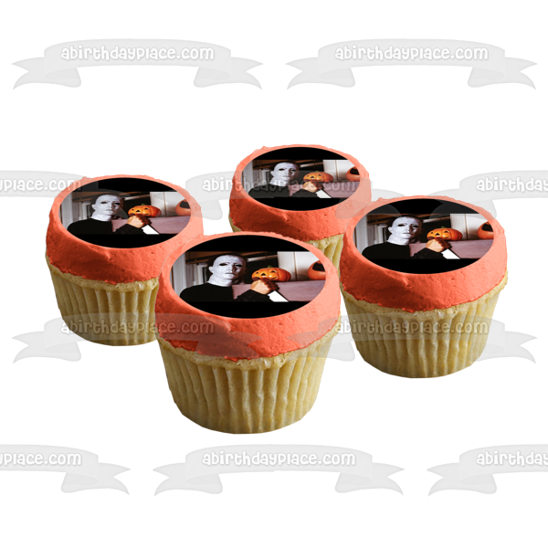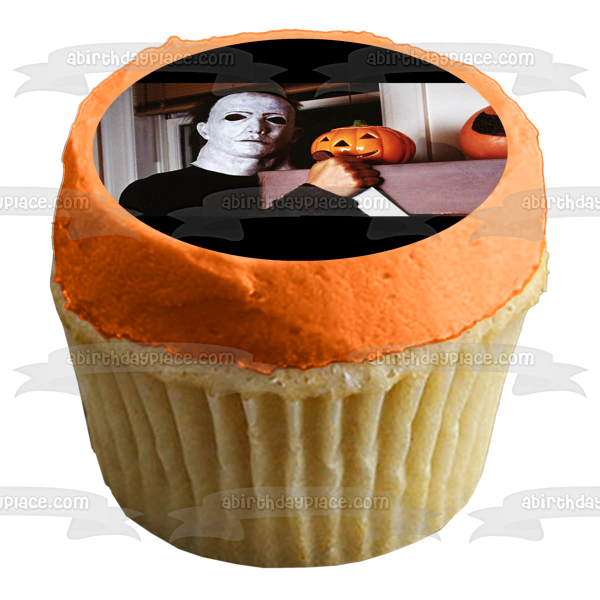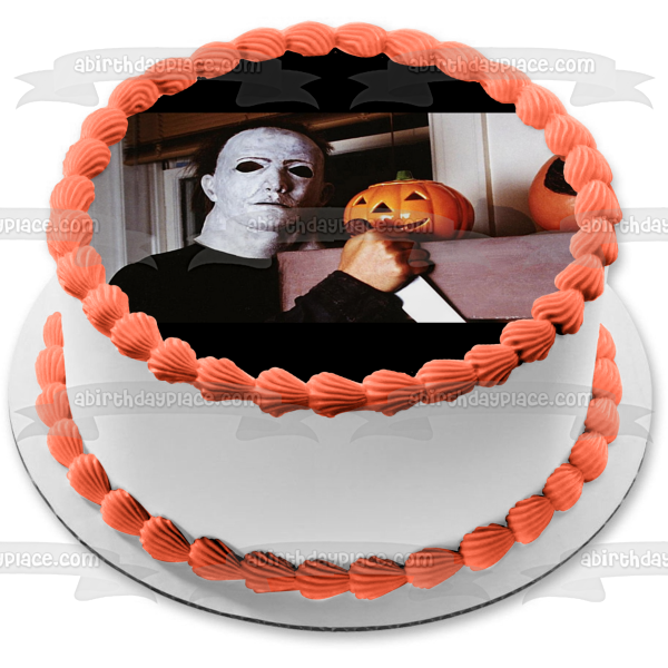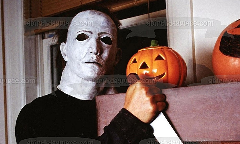 Decorate your Cake with this Halloween themed Edible Cake Topper Image featuring Michael Myers with a Knife!