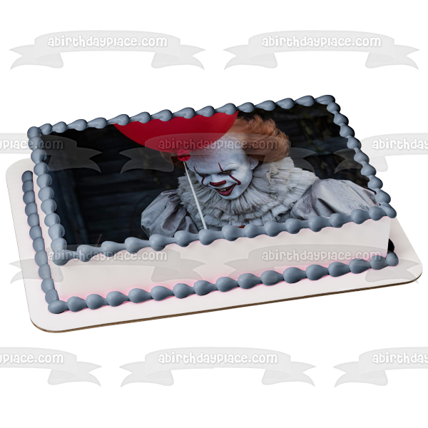 Decorate your Cake with this It themed Edible Cake Topper Image featuring Pennywise the Clown with a Red Balloon!