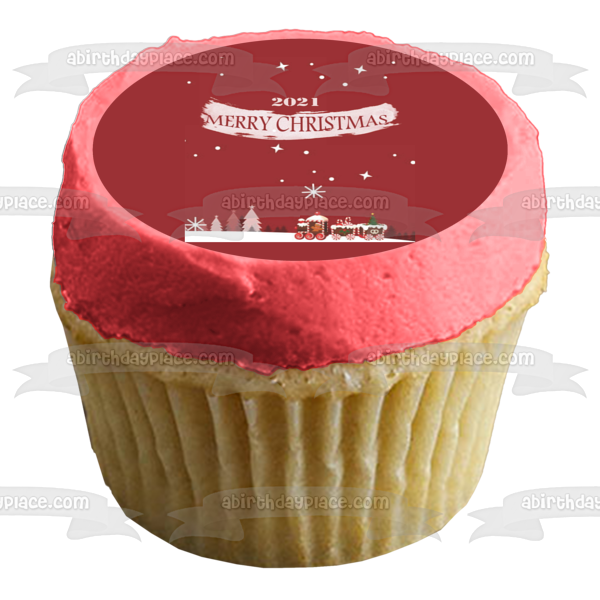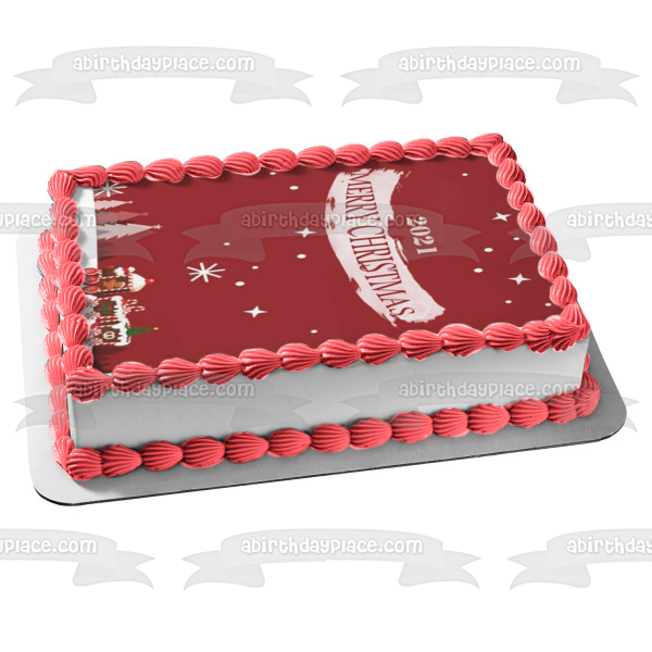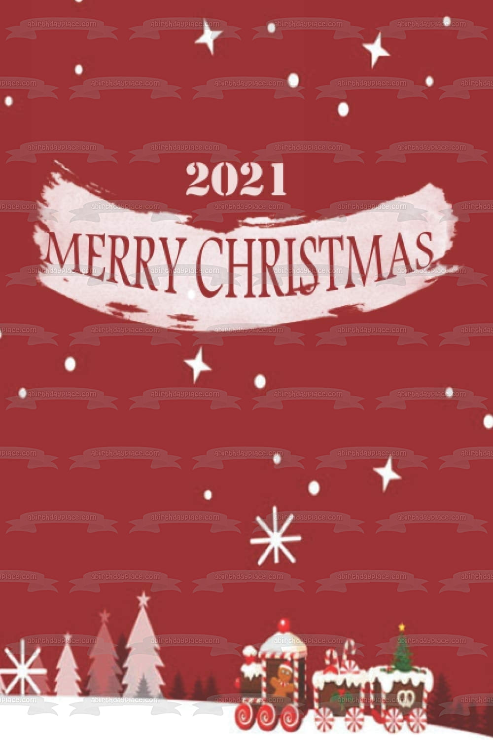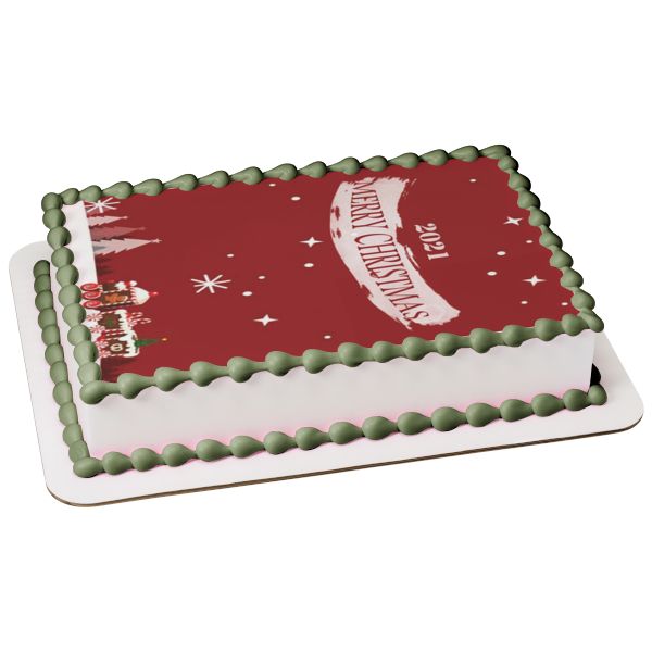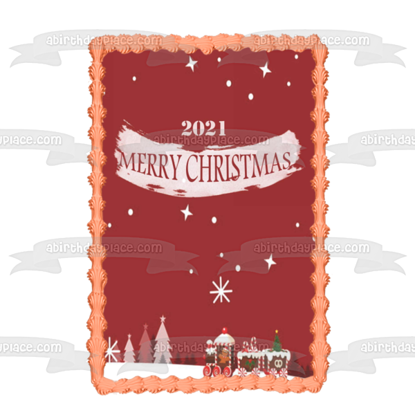 Decorate your Cake with this Merry Christmas themed Edible Cake Topper Image featuring a Gingerbread House!