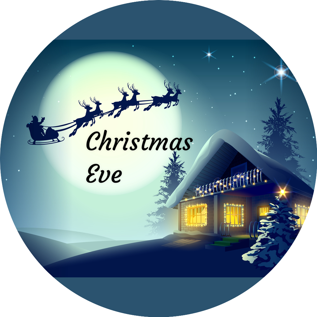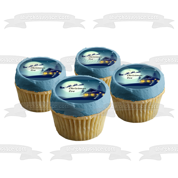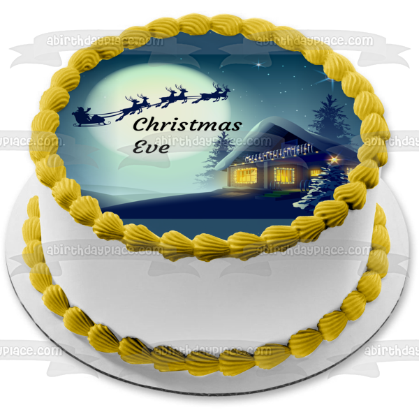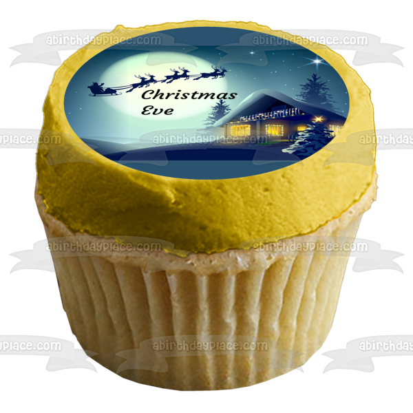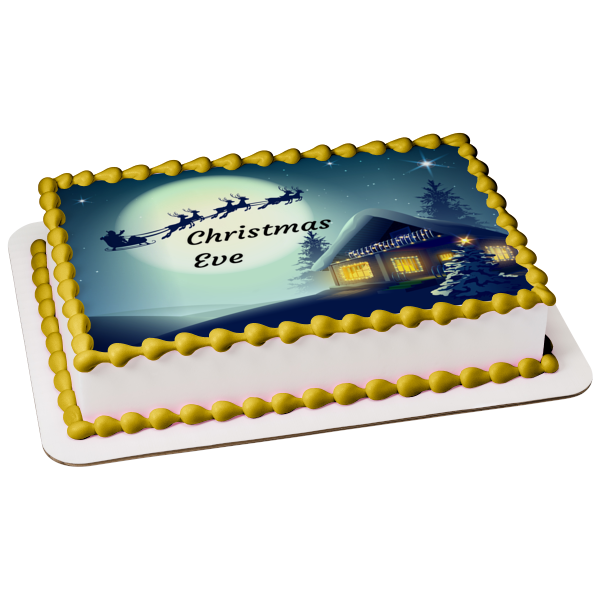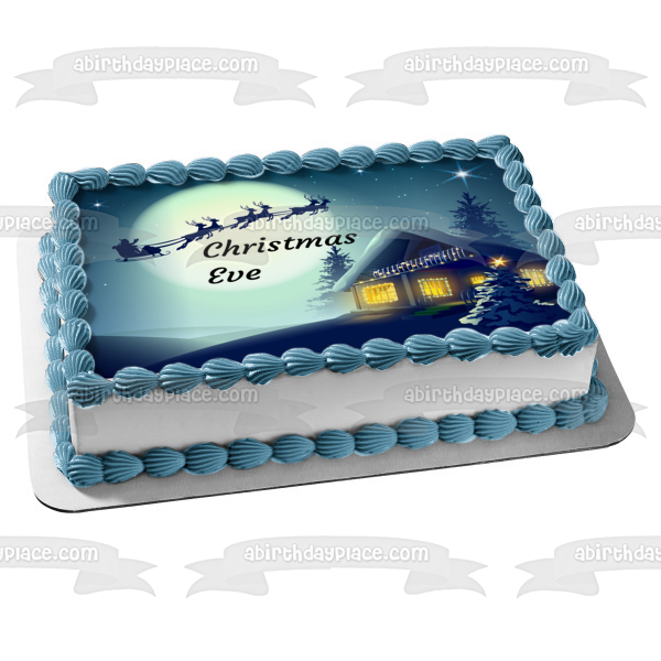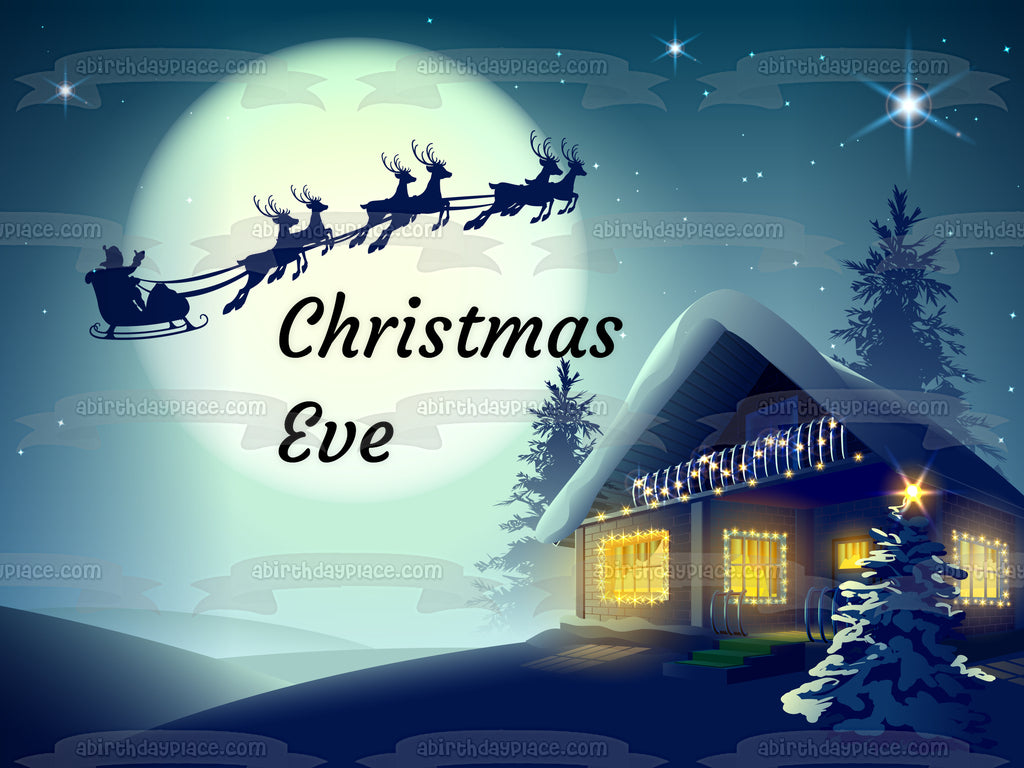 Decorate your Cake with this Merry Chirstmas Eve themed Edible Cake Topper Image featuring Santa Claus and Reindeer!