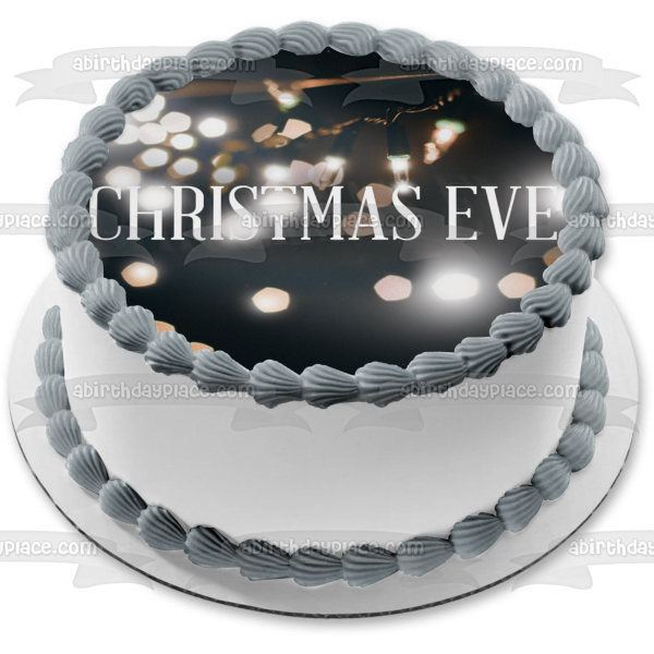 Decorate your Cake with this Christmas Eve themed Edible Cake Topper Image featuring Christmas Lights!
