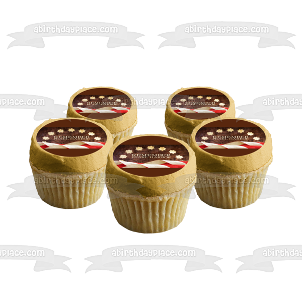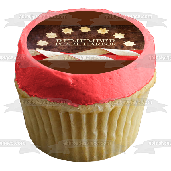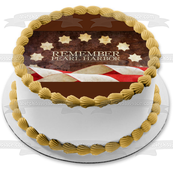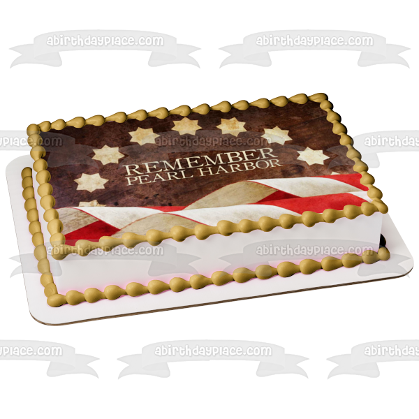 Decorate your Cake with this Remember Pearl Harbor themed Edible Cake Topper Image featuring Stars and The American Flag!
