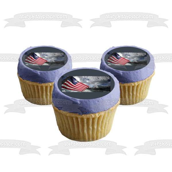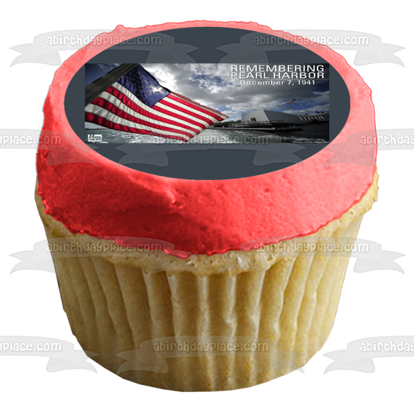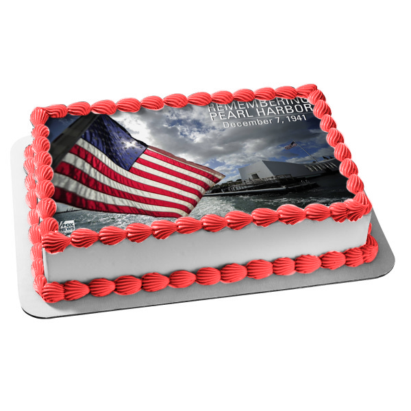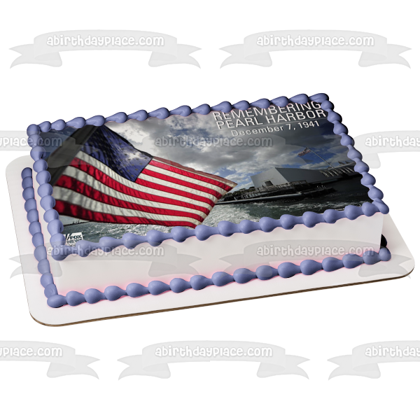 Decorate your Cake with this Remembering Pearl Harbor Day December 7th 1941 themed Edible Cake Topper Image featuring The American Flag!