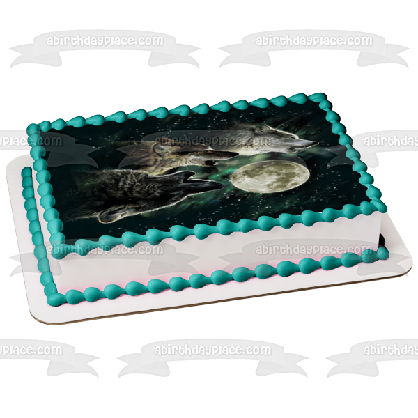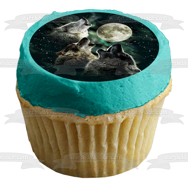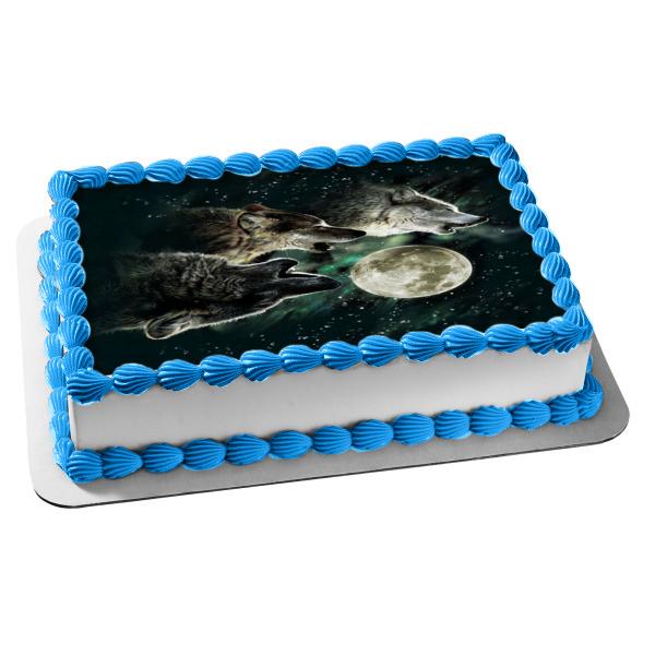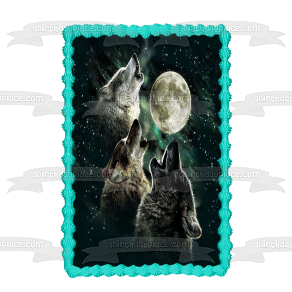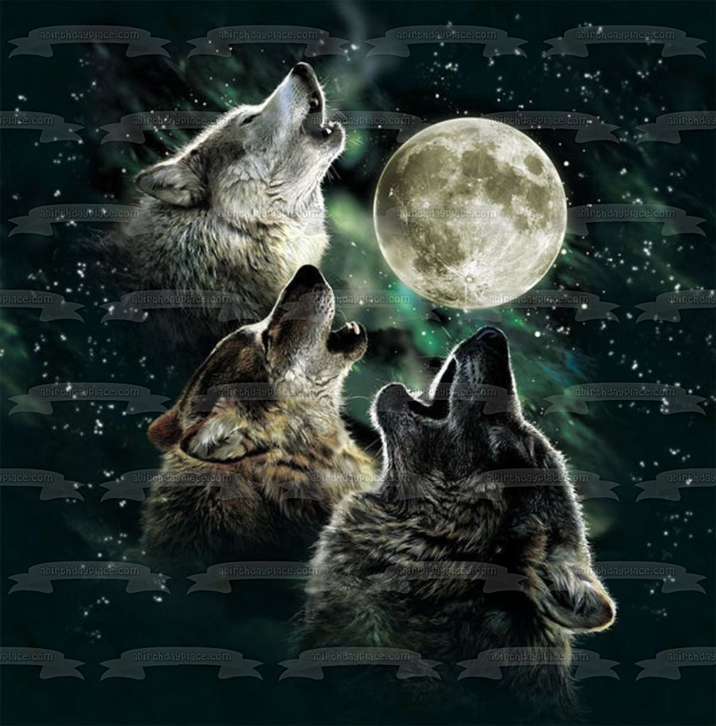 Decorate your Cake with this Wolf themed Edible Cake Topper Image featuring 3 Wolves Howling at the Moon!