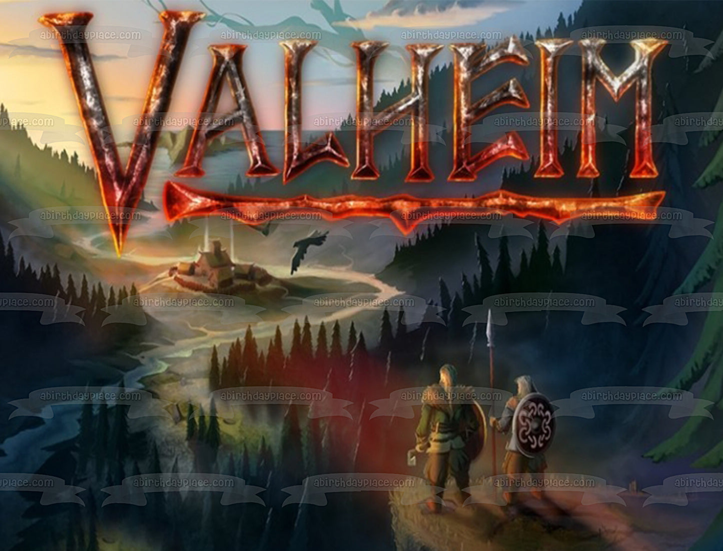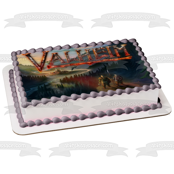 Decorate your Cake with this Valheim Village Overlook Scene themed Edible Cake Topper Image!
