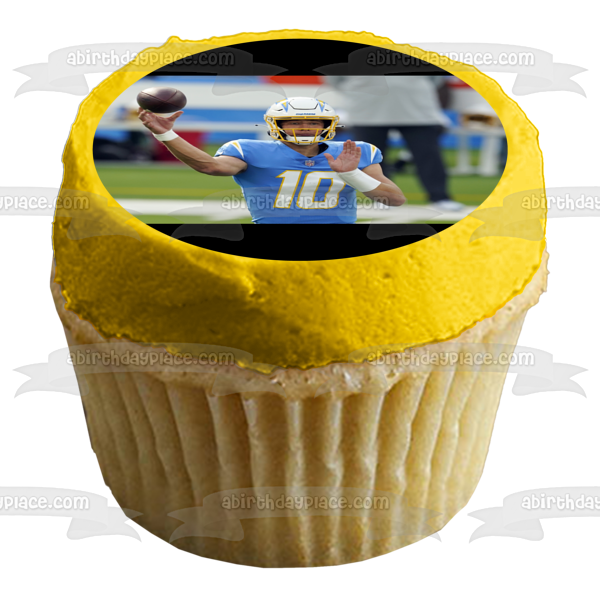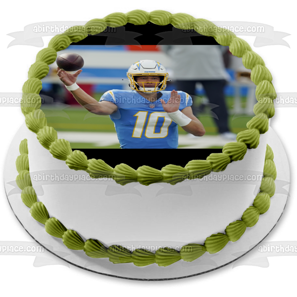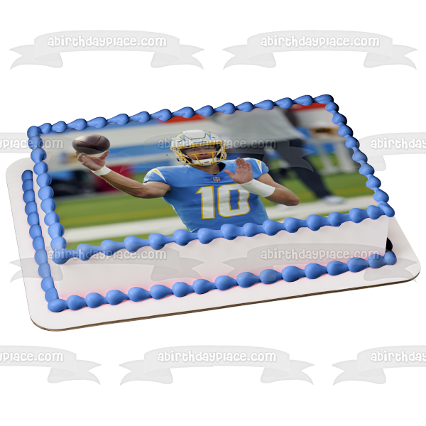Decorate your Cake with this NFL themed Edible Cake Topper Image featuring the Los Angeles Chargers quarterback Justin Herbert!