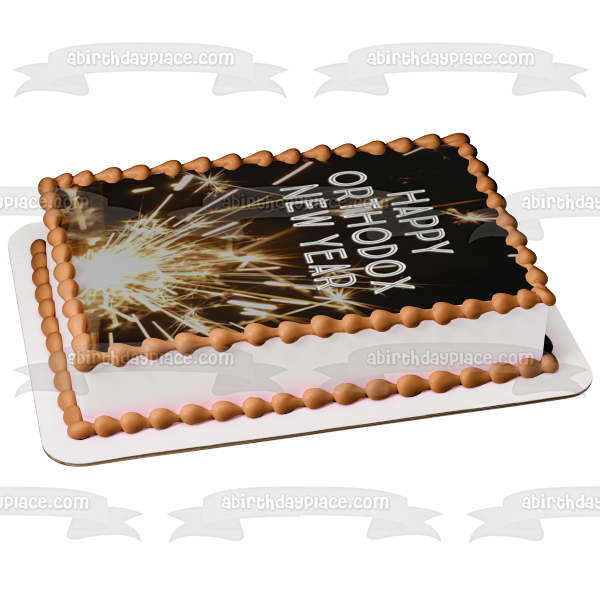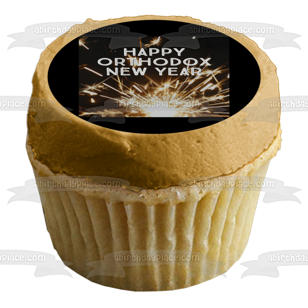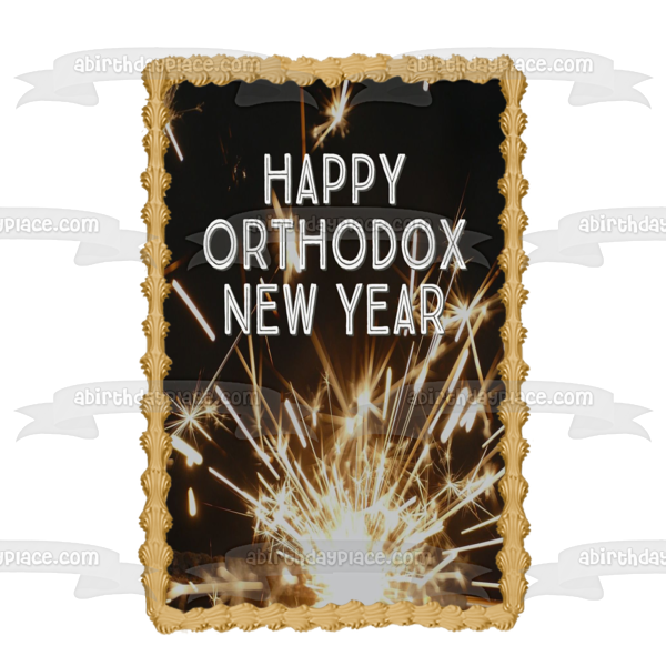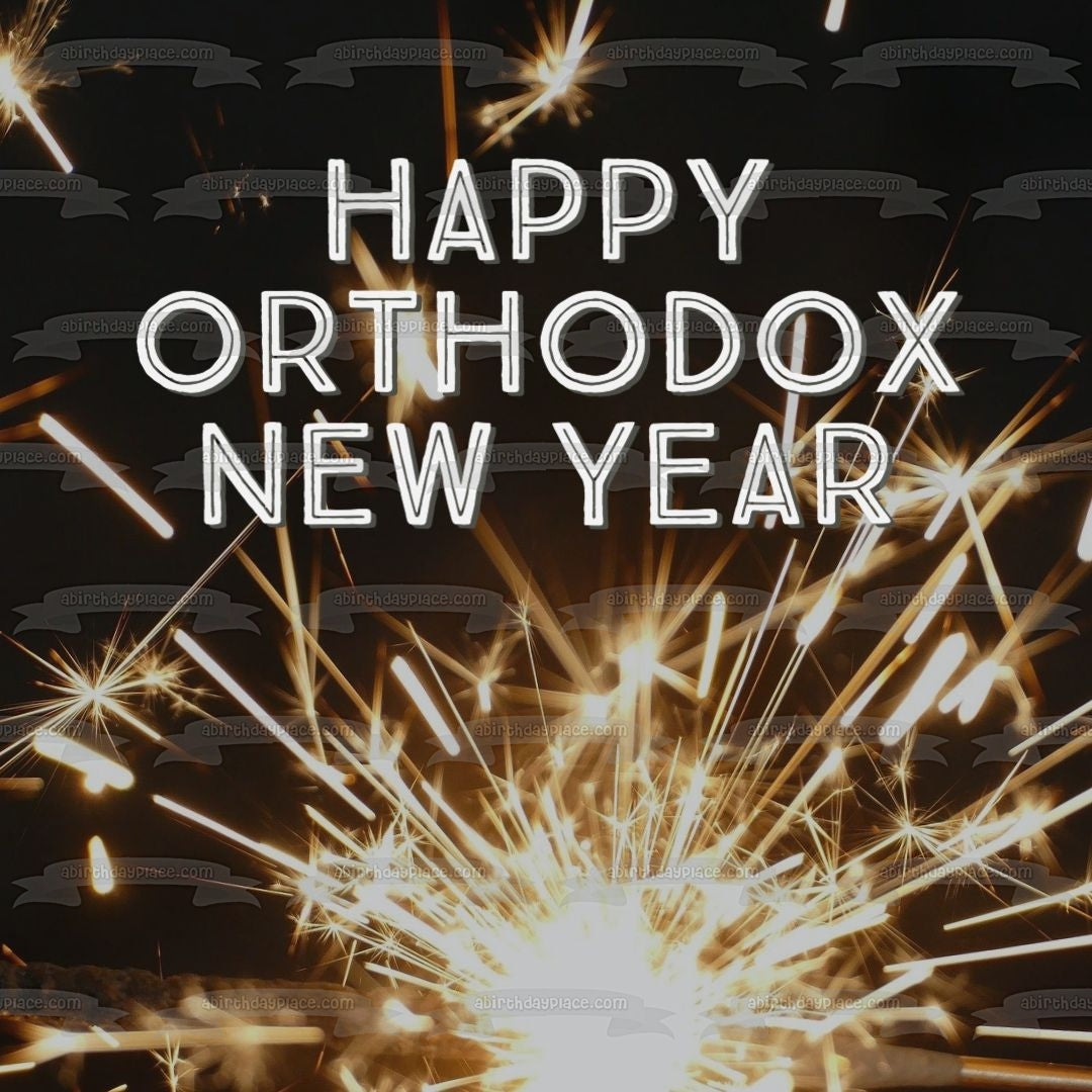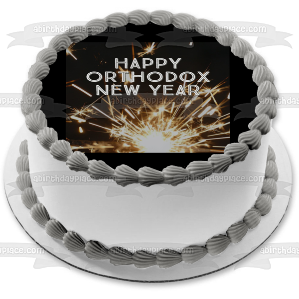 Decorate your Cake with this Happy Orthodox New Year themed Edible Cake Topper Image featuring Fireworks!