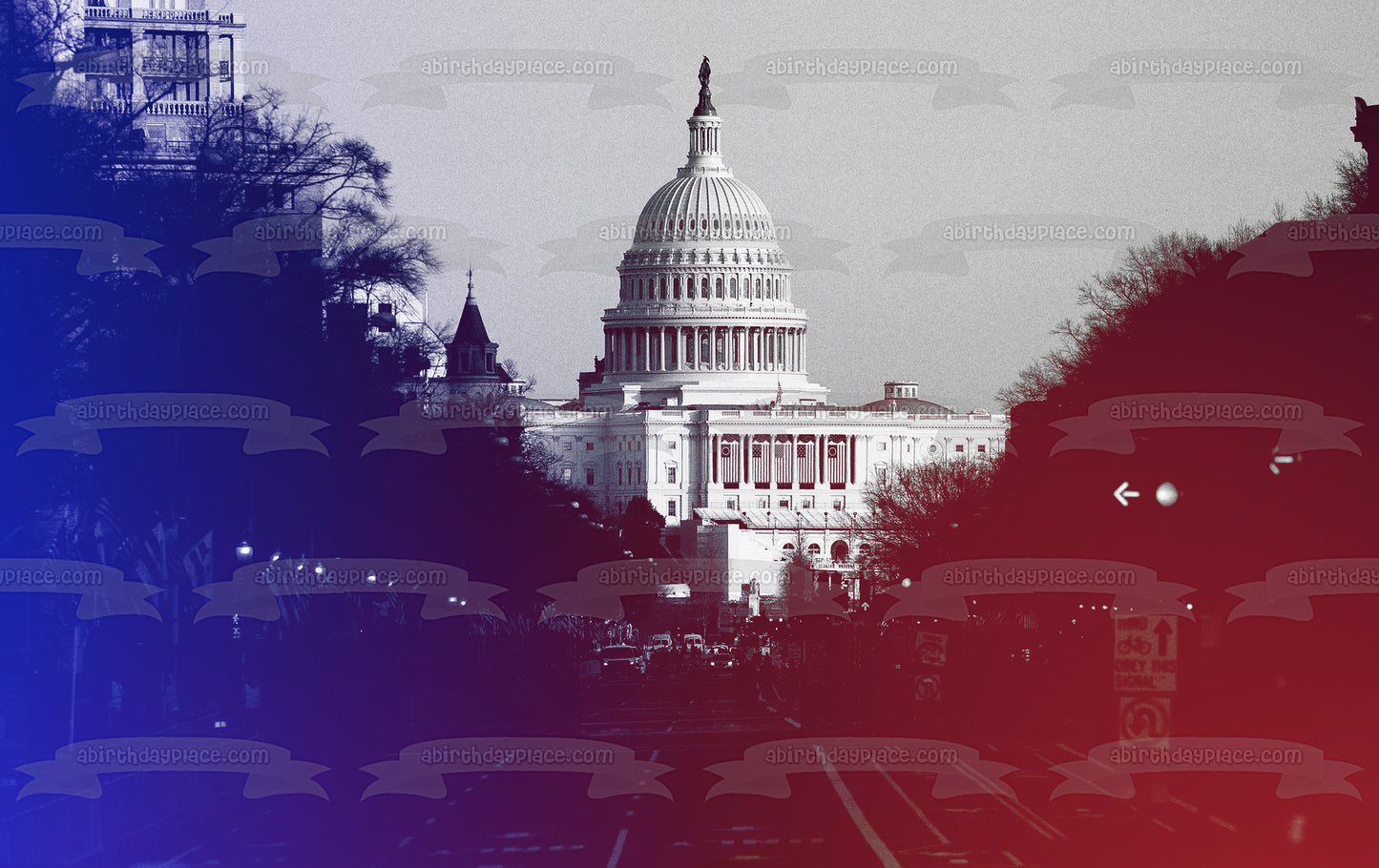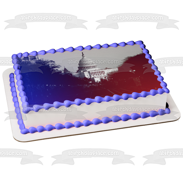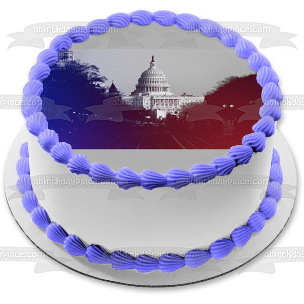 Decorate your Cake with this Happy INauguration Day themed Edible Cake Topper Image featuring The White House!