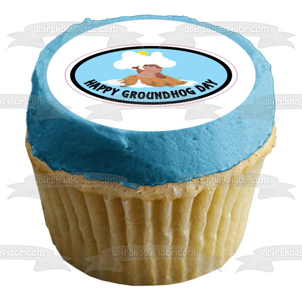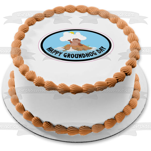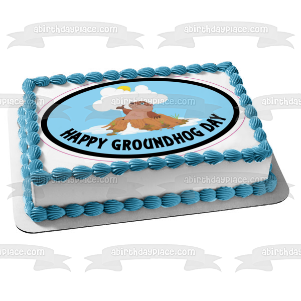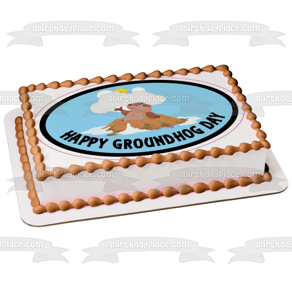 Decorate your Cake with this Happy Groundhog Day themed Edible Cake Topper Image featuring a Groundhog!