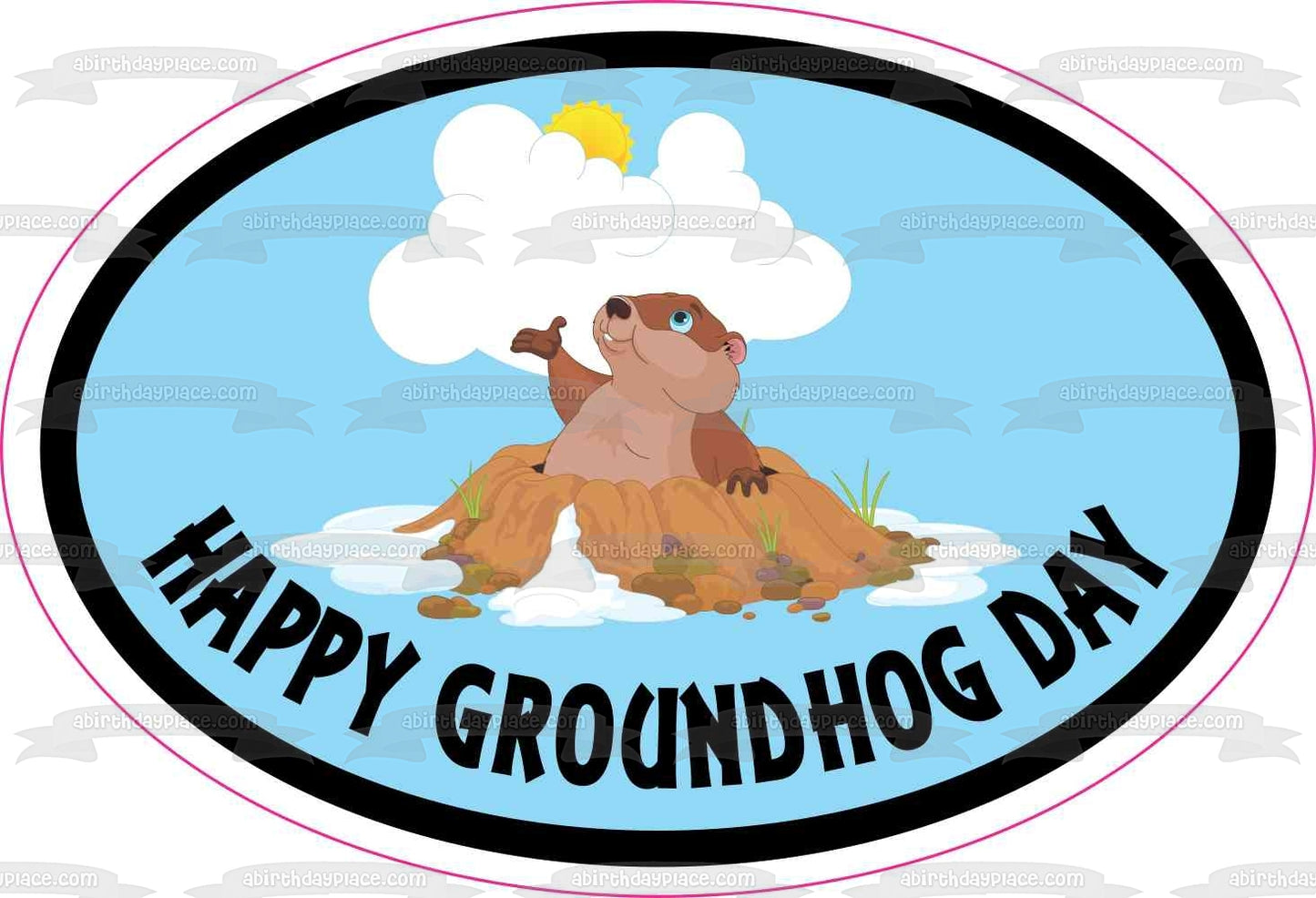 Happy Groundhog Day Edible Cake Topper Image ABPID55216