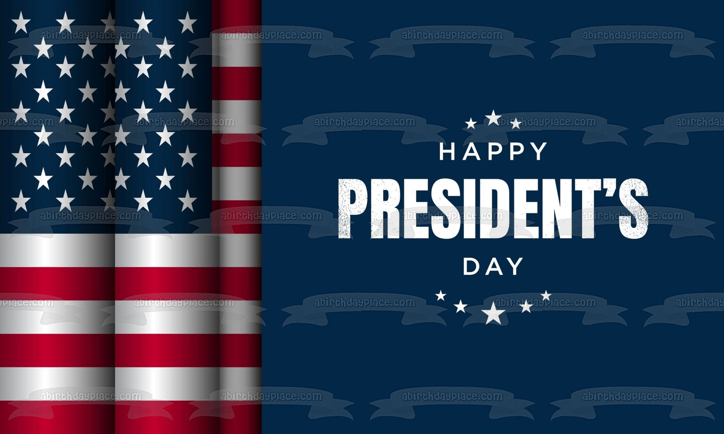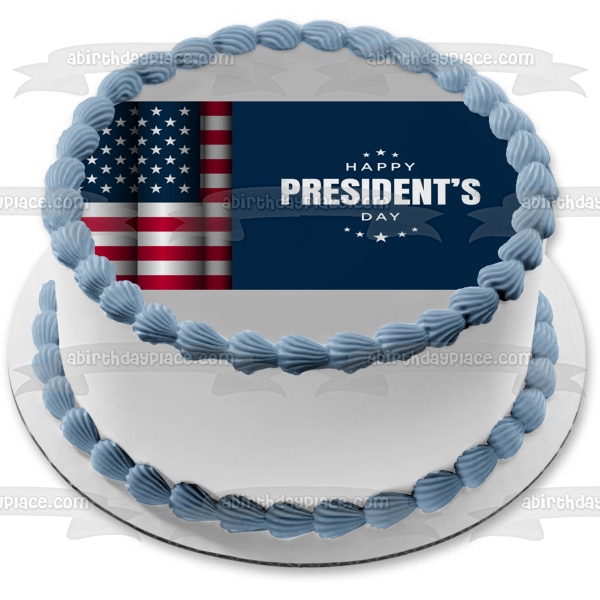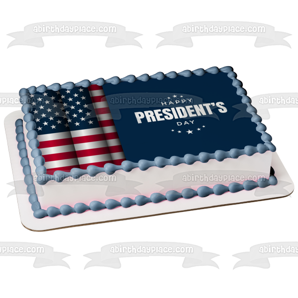 Decorate your Cake with this Happy President's Day themed Edible Cake Topper Image featuring the American Flag!