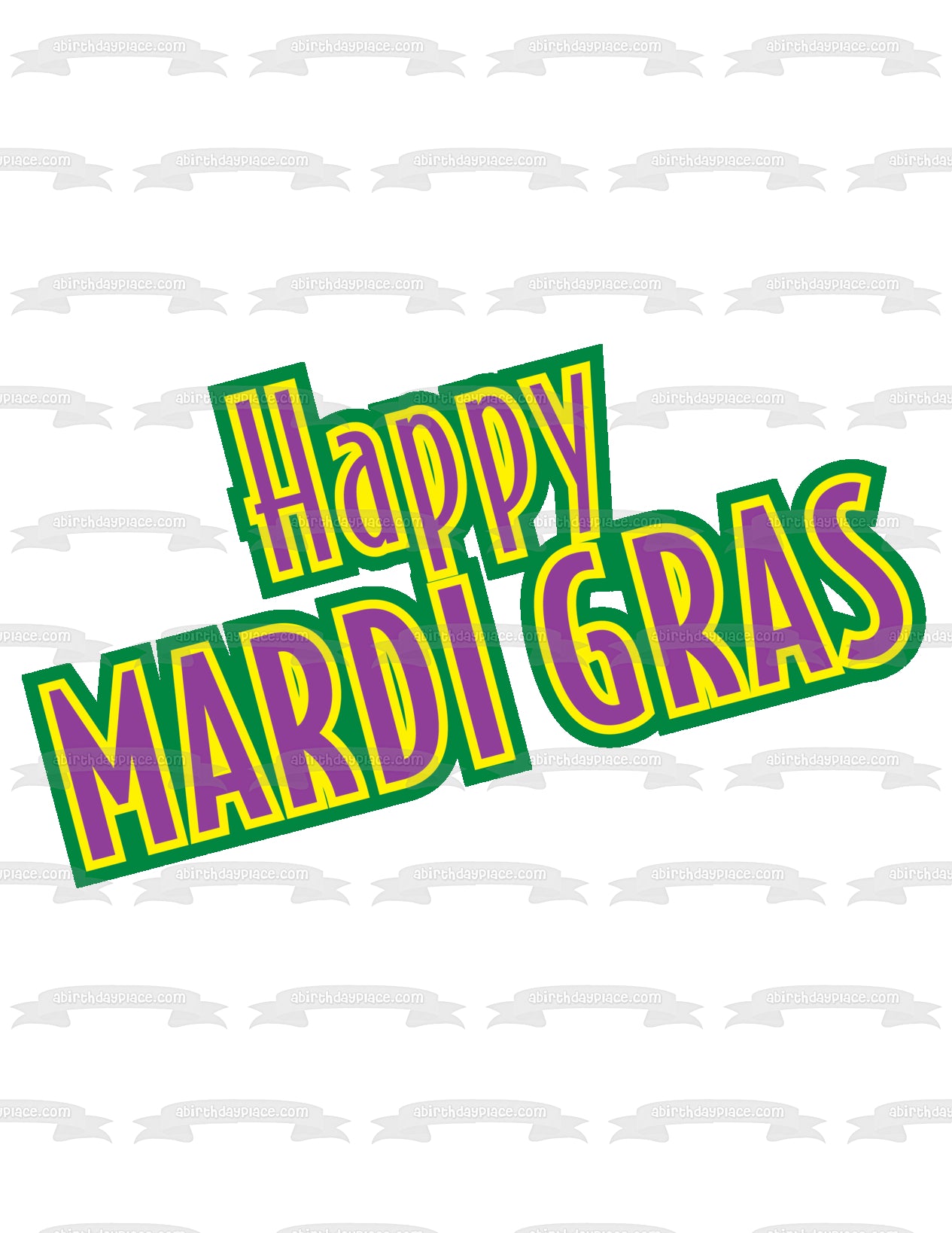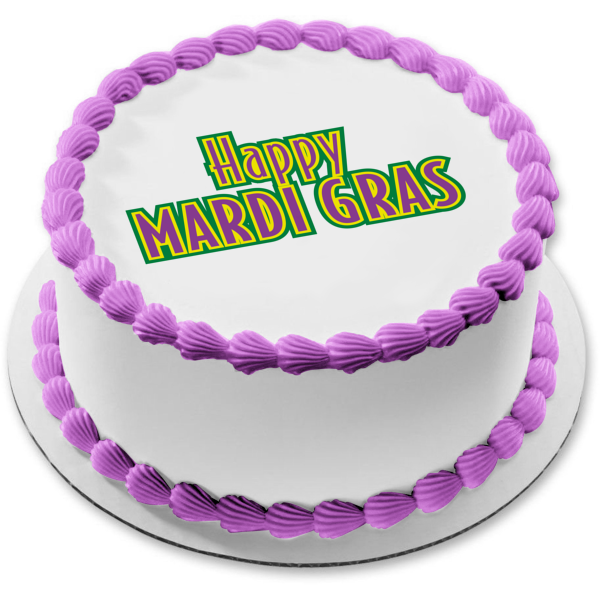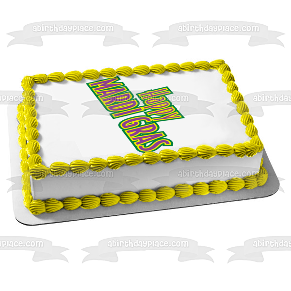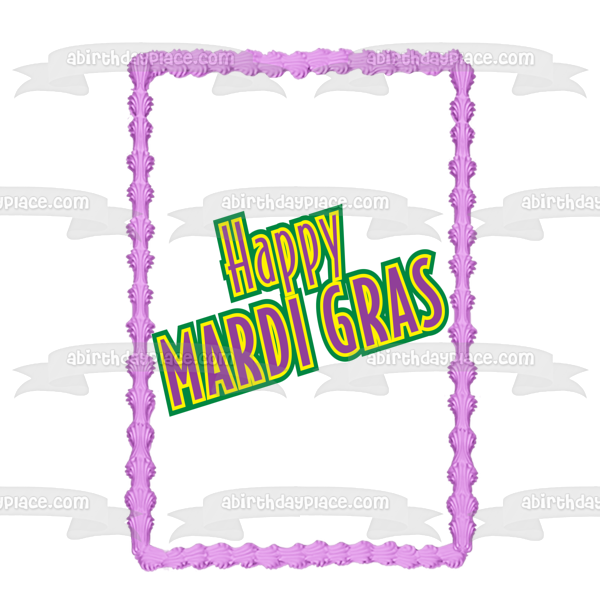 Decorate your Cake with this Happy Mardi Gras themed Edible Cake Topper Image!