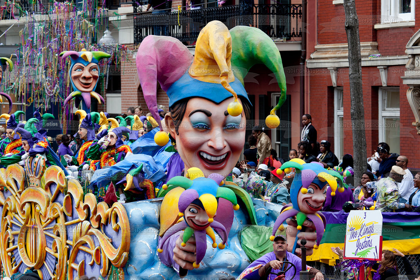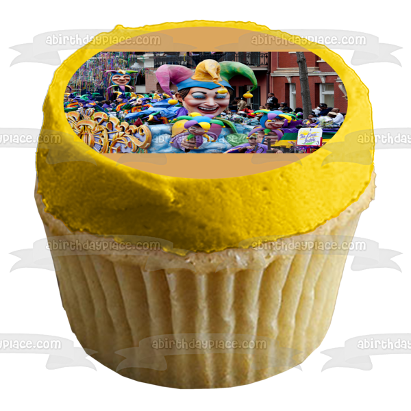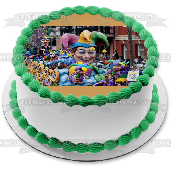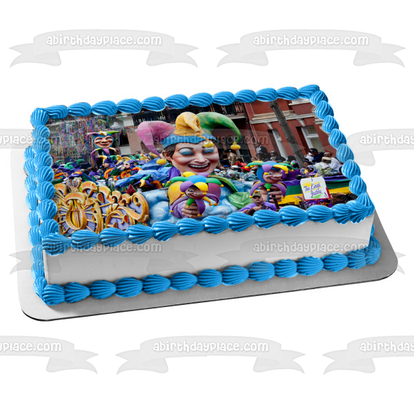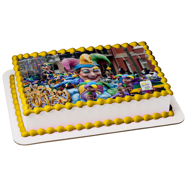 Decorate your Cake with this Happy Mardi Gras themed Edible Cake Topper Image featuring their Annual Parade!