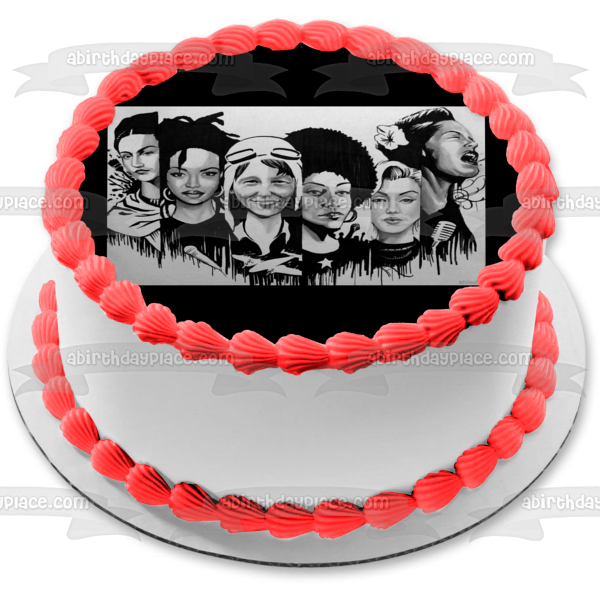 Decorate your Cake with this Happy Women's History Month themed Edible Cake Topper Image featuring Amelia Earhart, Frida Kahlo, Marilyn Monroe, Angela Davis and Lauryn HIll!