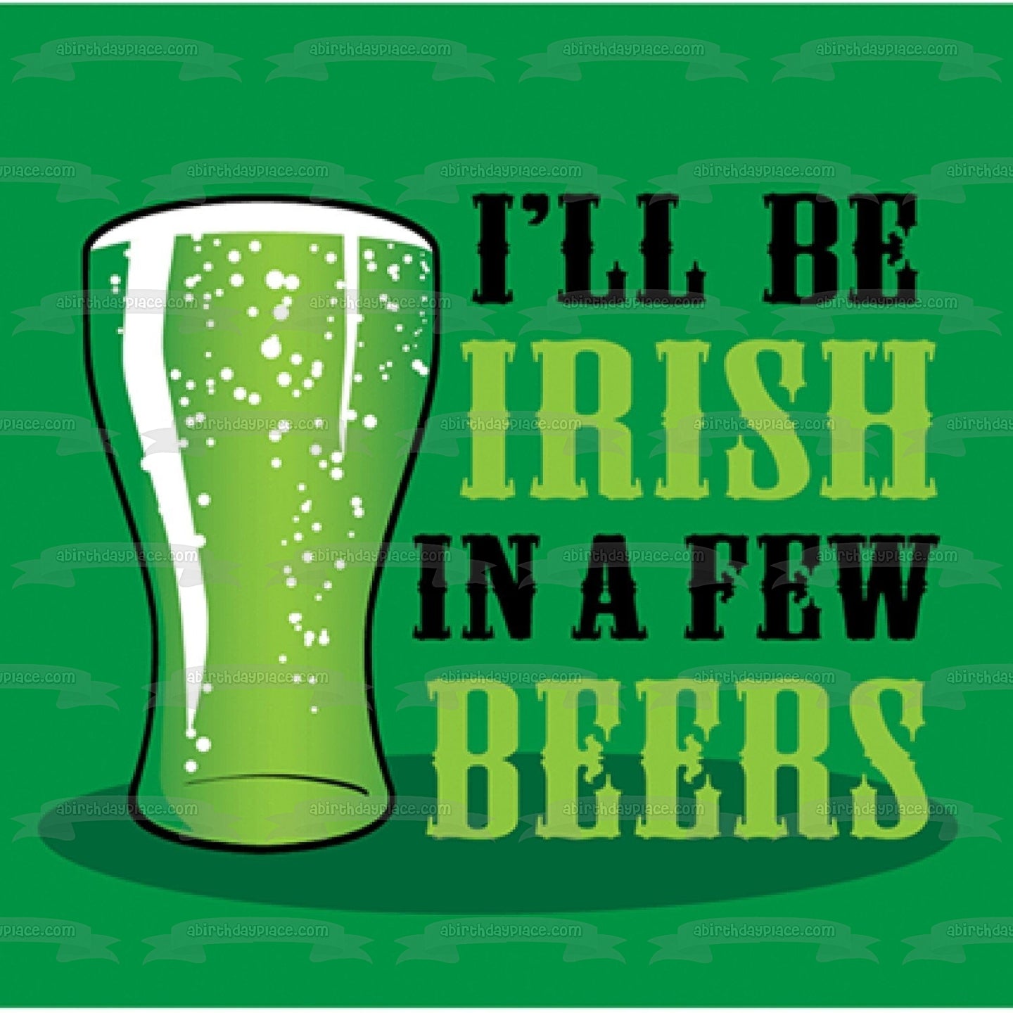 I'Ll Be Irish In a Few Beers Happy St. Patrick's Day Edible Cake Topper Image ABPID55253