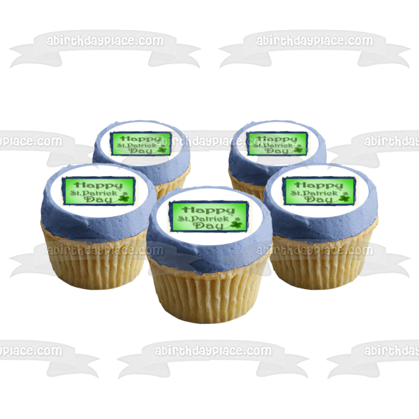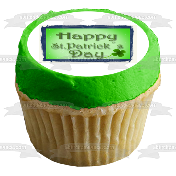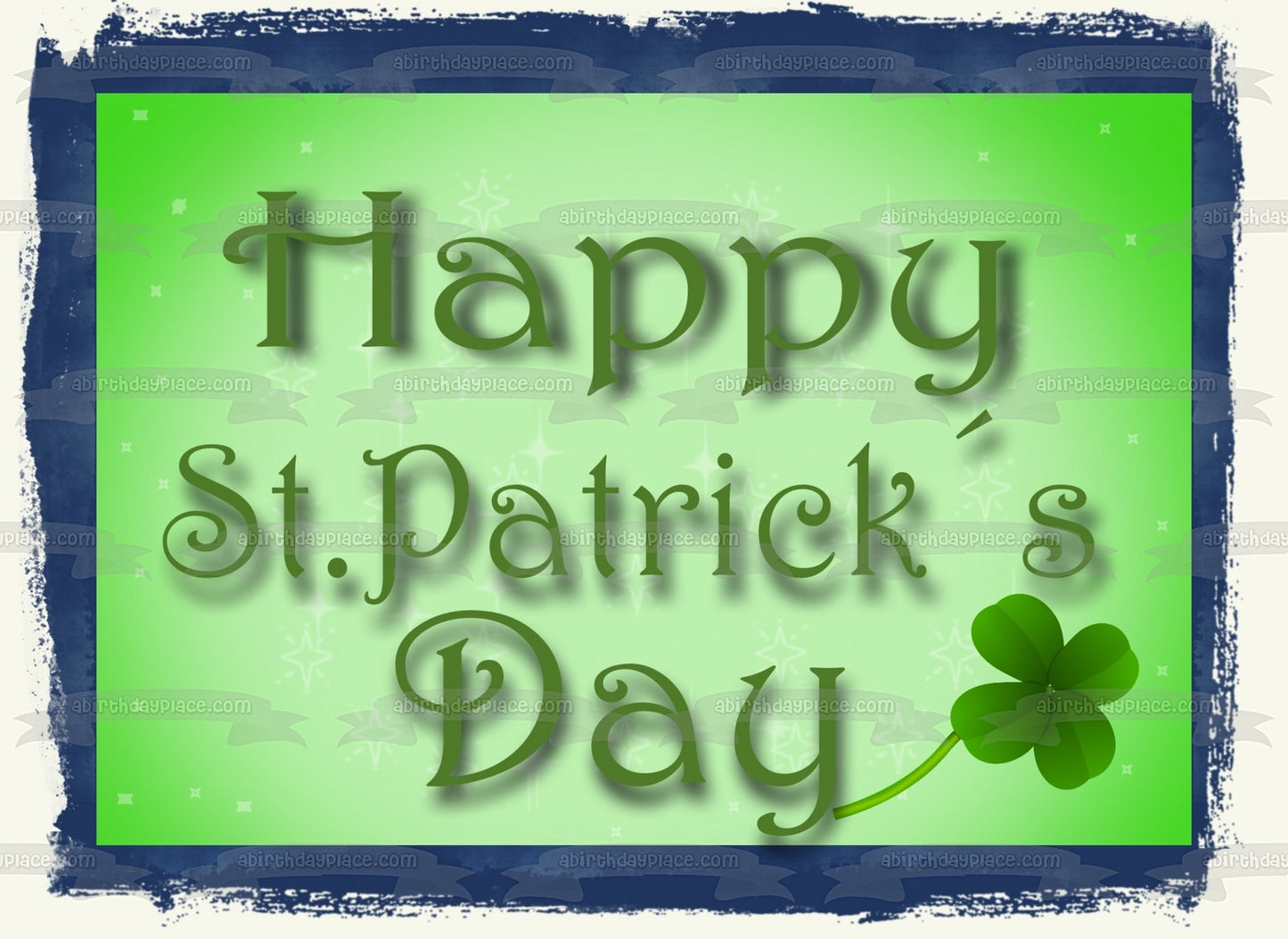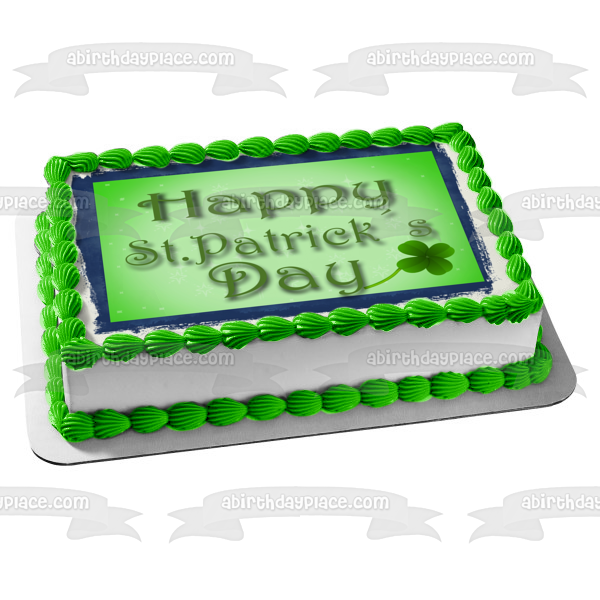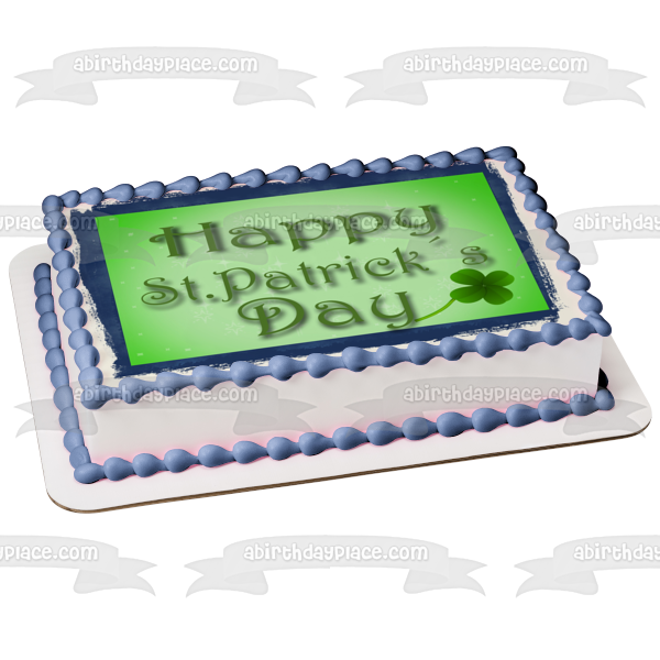 Decorate your Cake with this Happy St. Patrick's Day themed Edible Cake Topper Image featuring a 4 Leaf Clover!