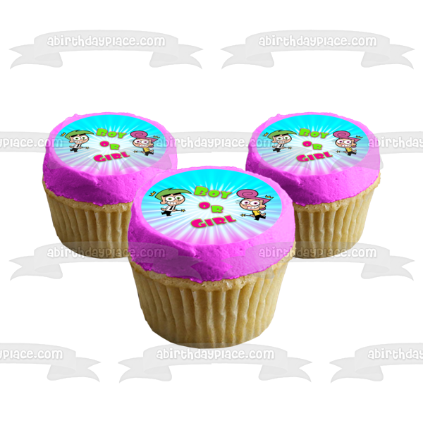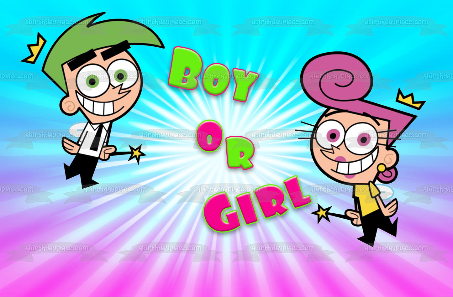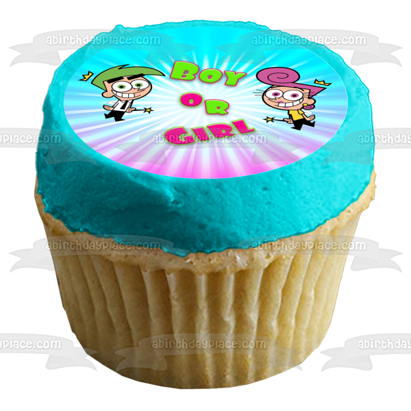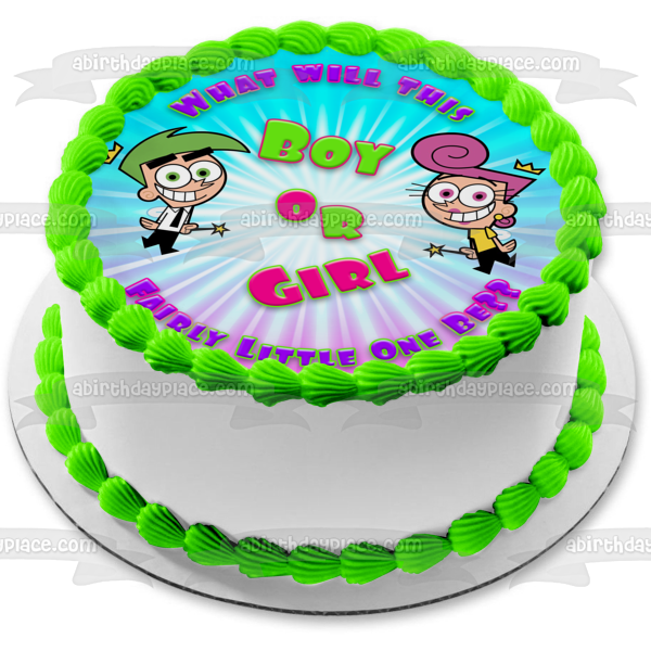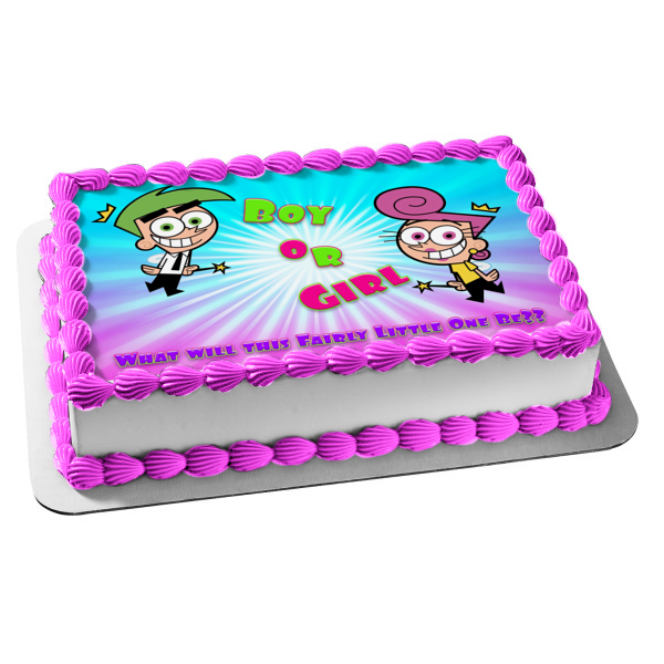 Decorate your Cake with this Fairly Little One Fairly Odd Parents themed Edible Cake Topper Image featuring "Boy or Girl" for your Gender Reveal!