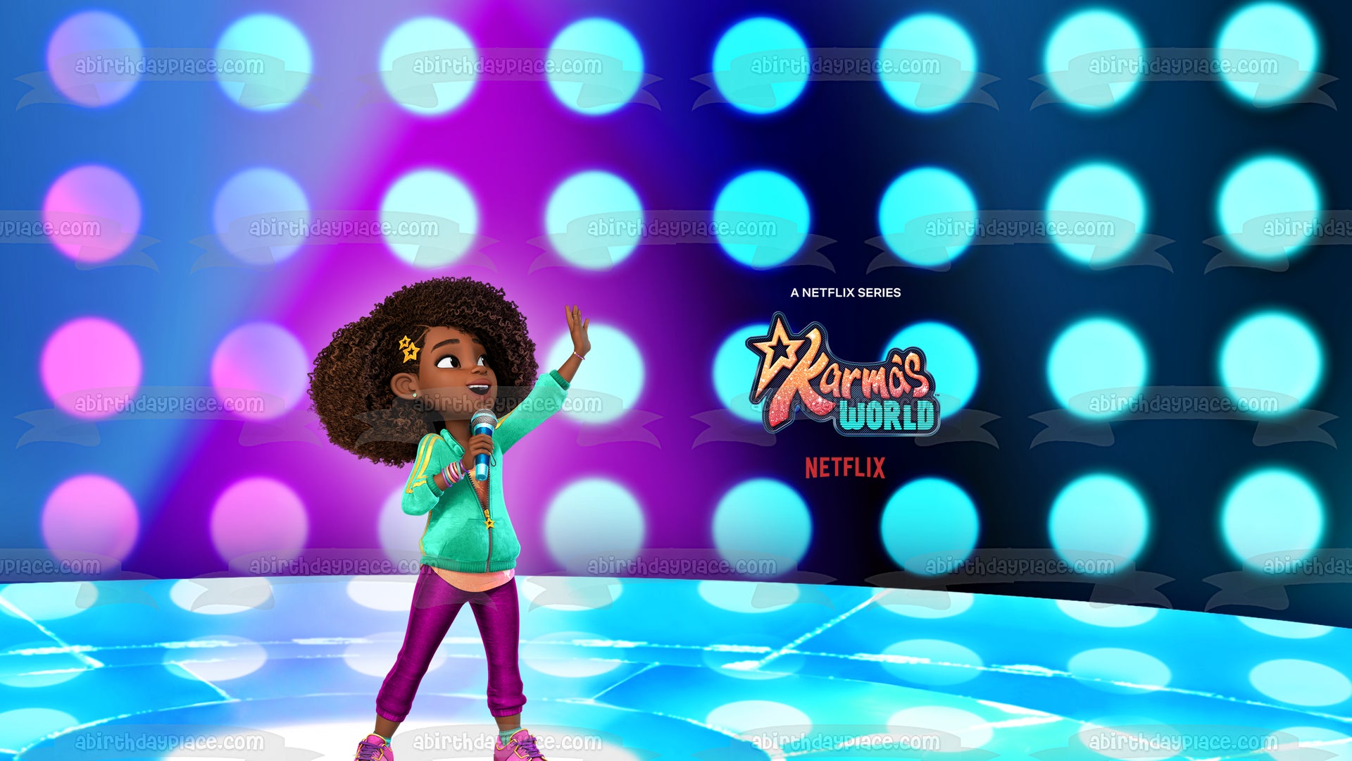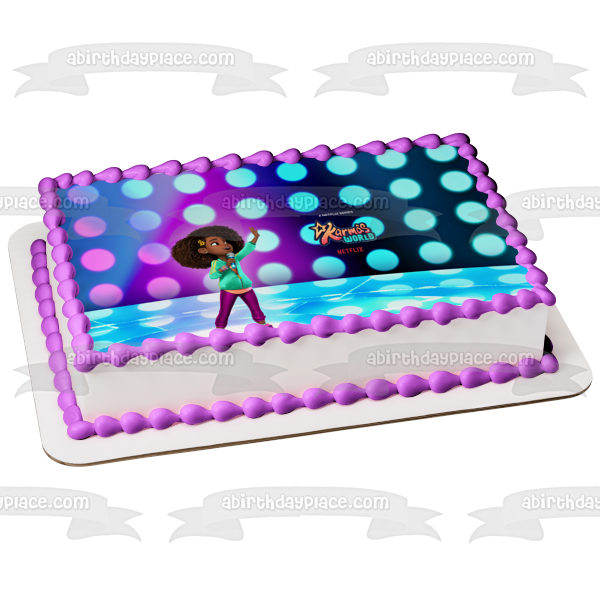 Decorate your Cake with this Karma's World themed Edible Cake Topper Image featuring Karma Singing!