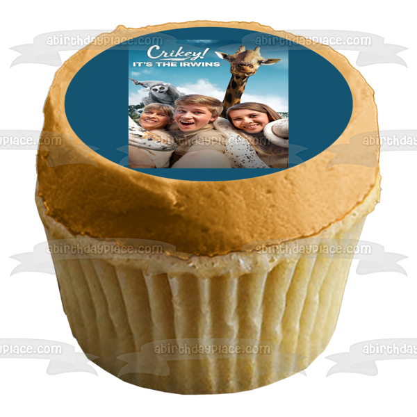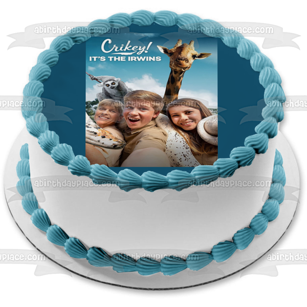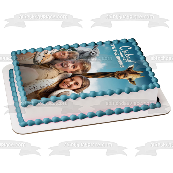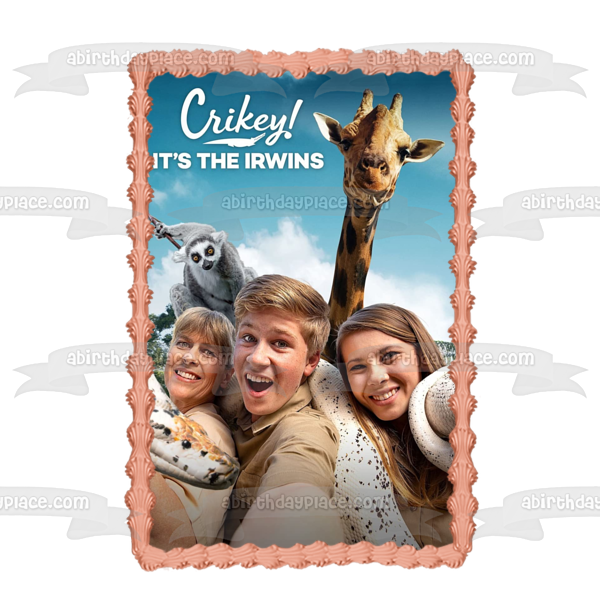 Decorate your Cake with this Crikey! It's the Irwins themed Edible Cake Topper Image featuring Robert, Bindi, Terri, a Giraffe, a Snake and a Lemur!