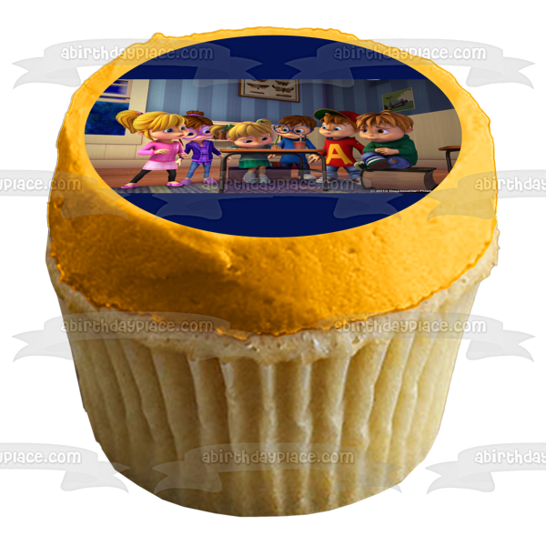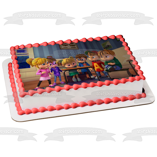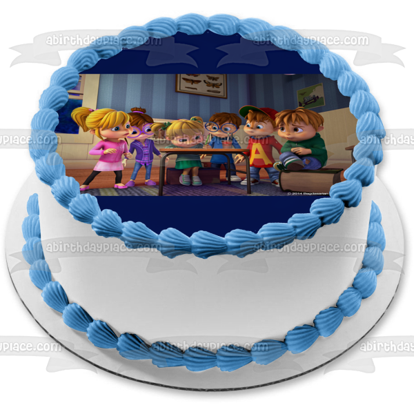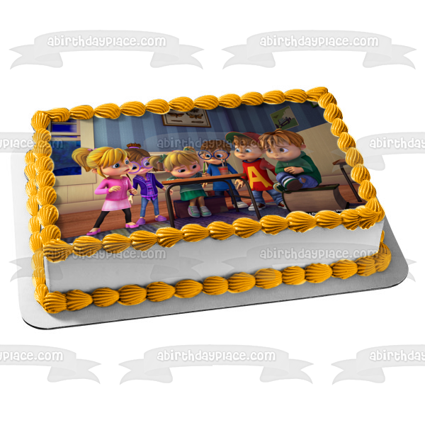 Decorate your Cake with this Alvinnn!!! and the Chipmunks themed Edible Cake Topper Image featuring Jenette, Eleanor, Brittany, Alvin, Simon and Theodore!