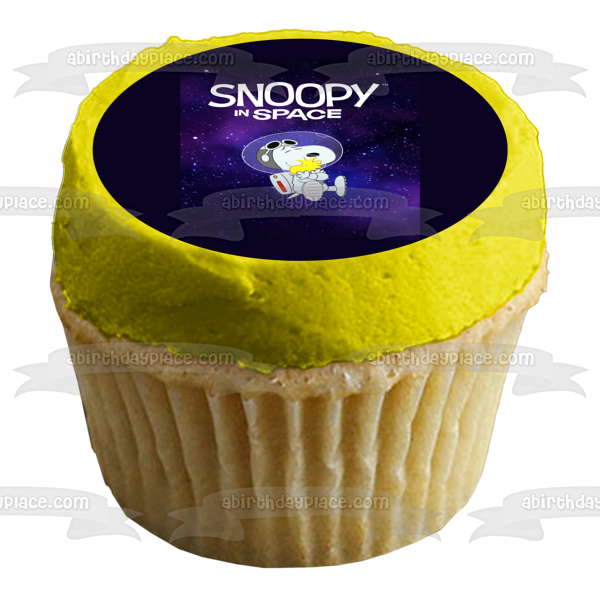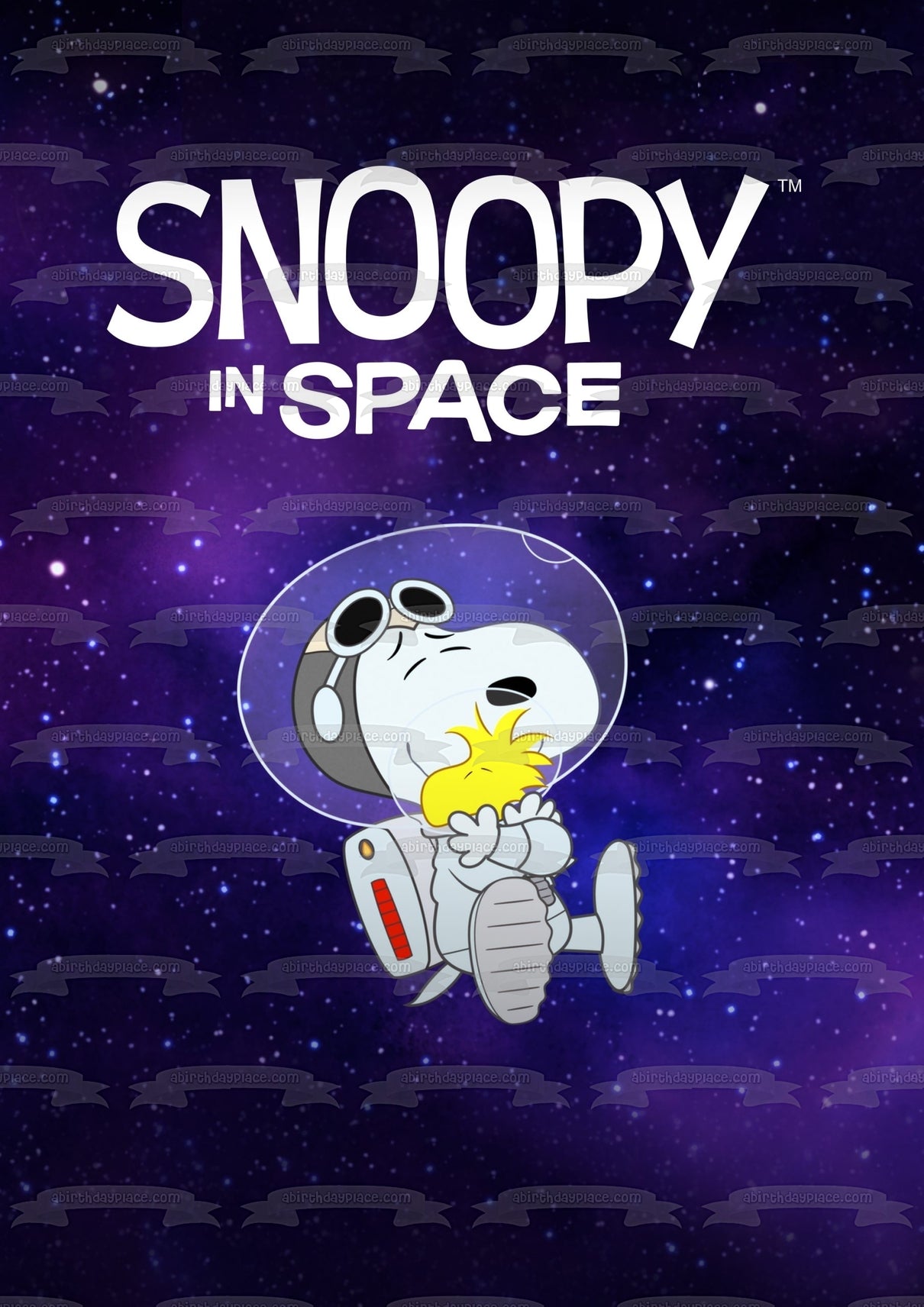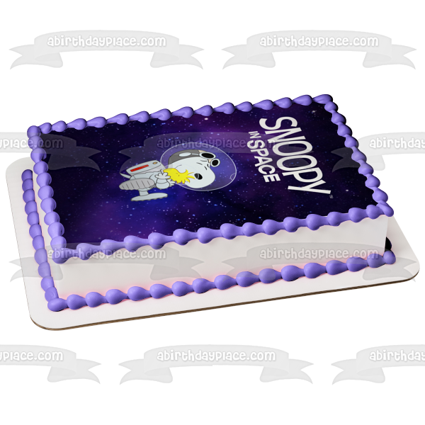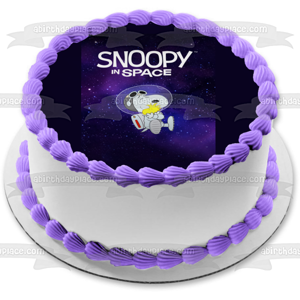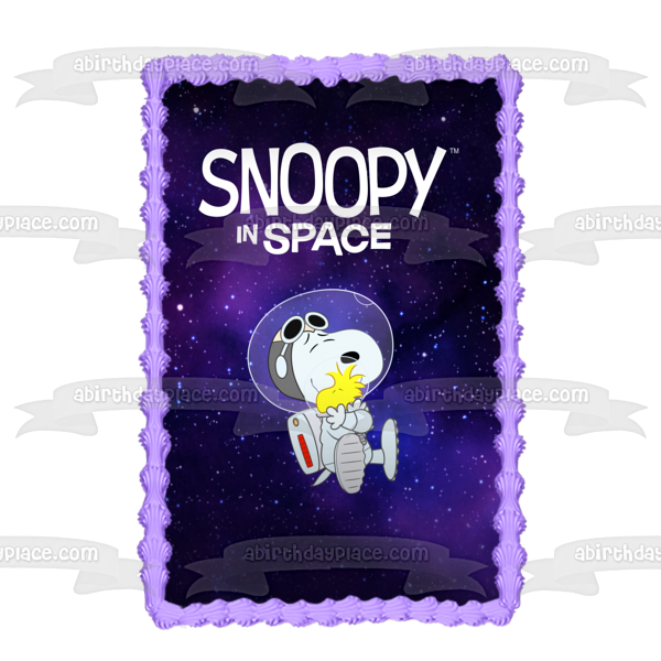 Decorate your Cake with this Snoopy in Space themed Edible Cake Topper Image featuring Woodstock and Snoopy Hugging!