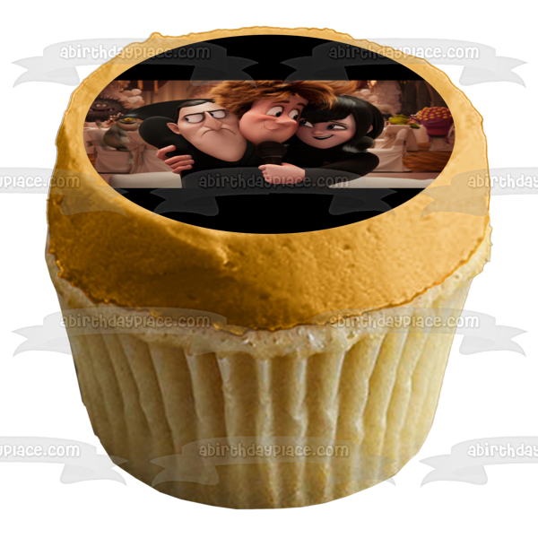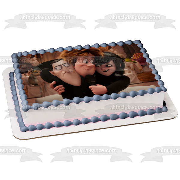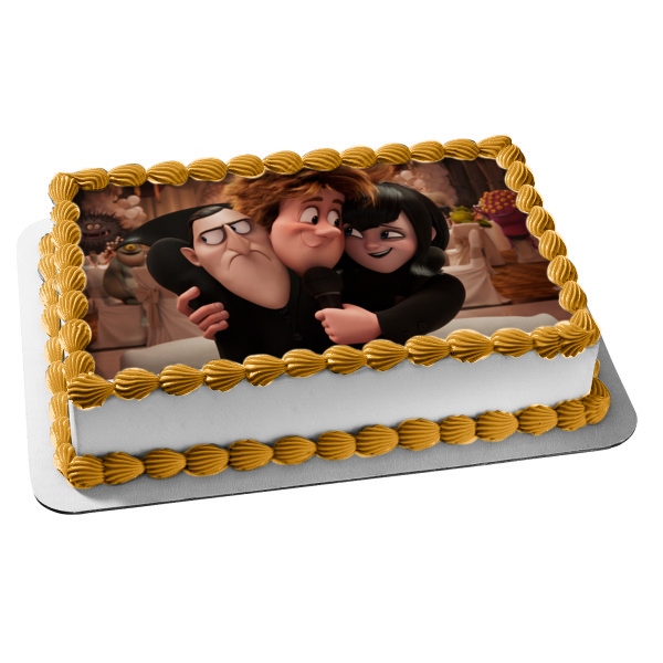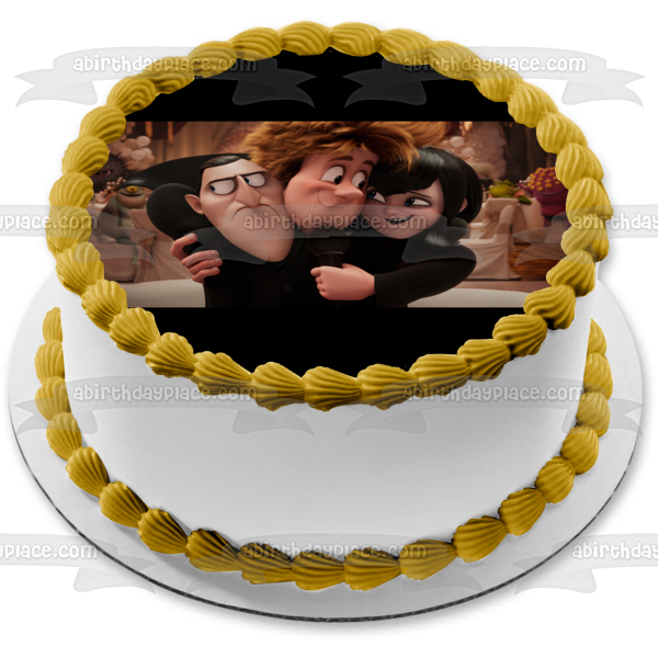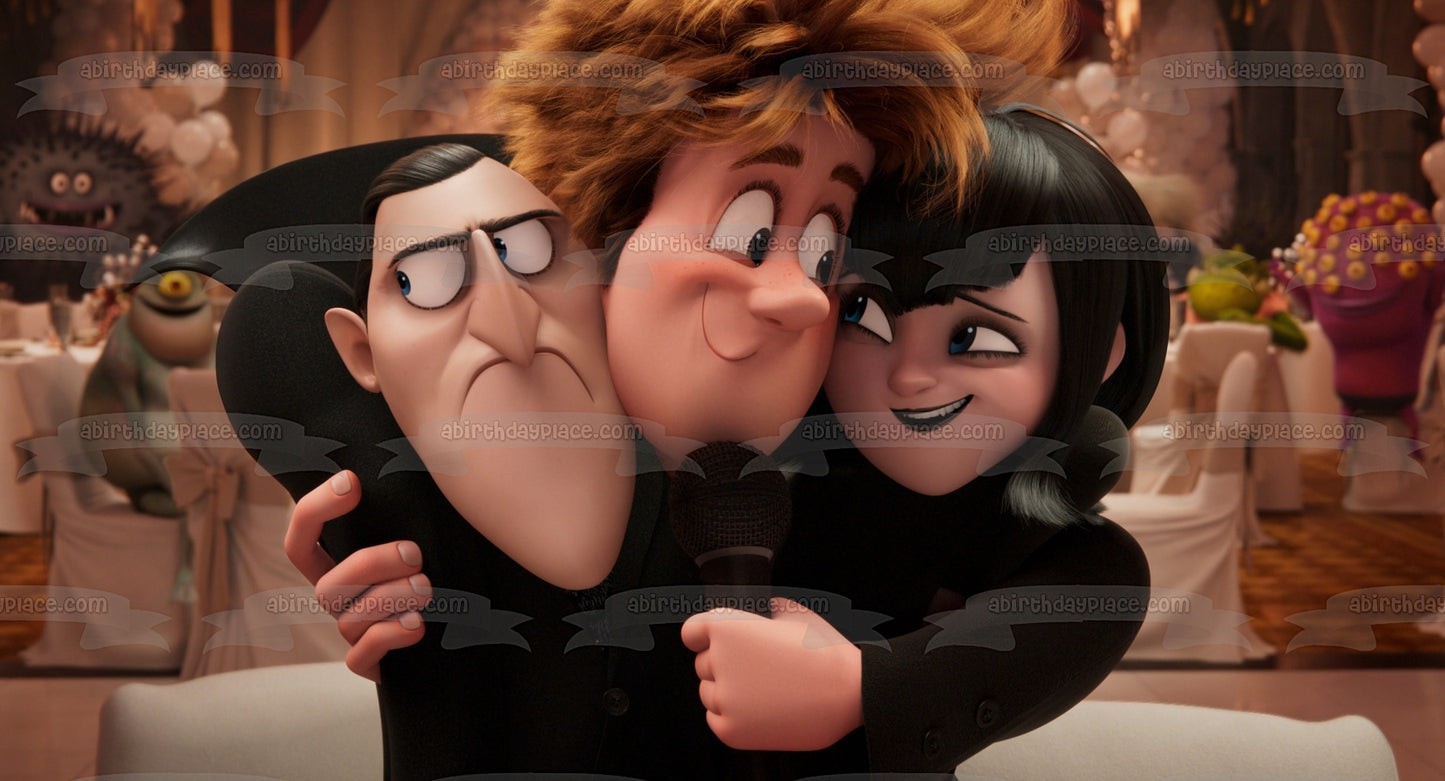 Decorate your Cake with this Hotel Transylvania: Transformania themed Edible Cake Topper Image featuring Dracula, Dennis and Mavis!