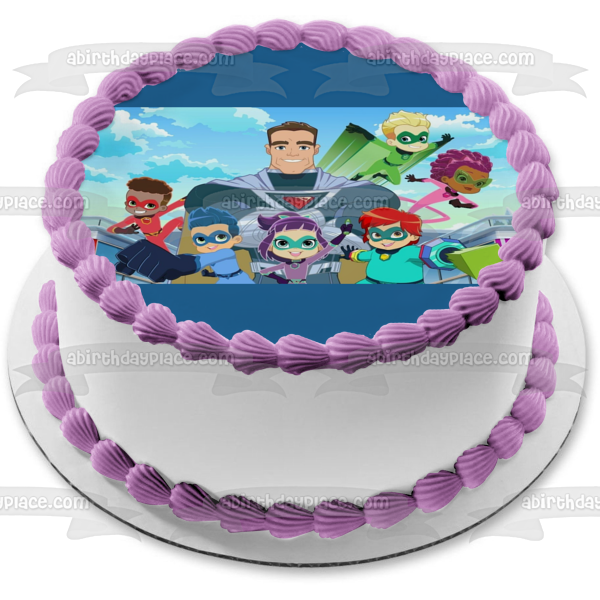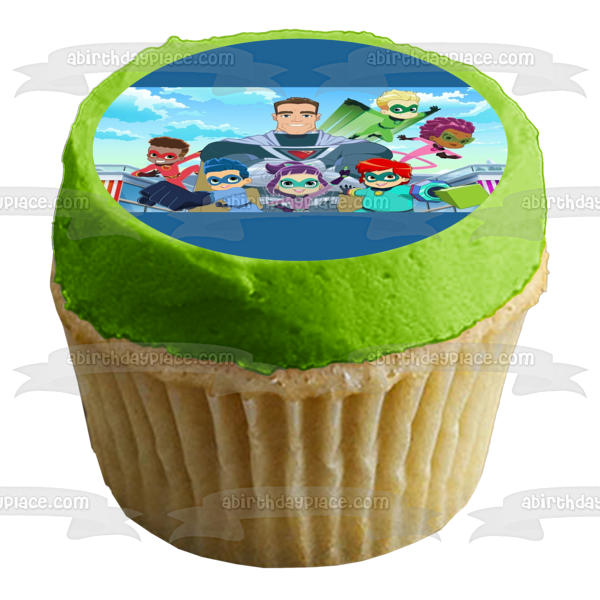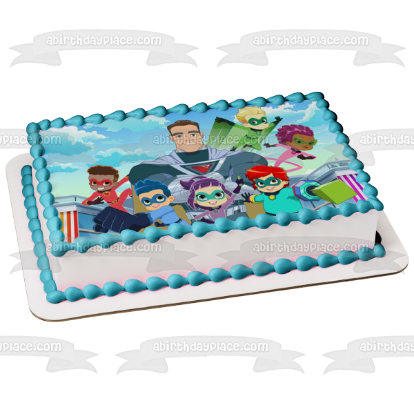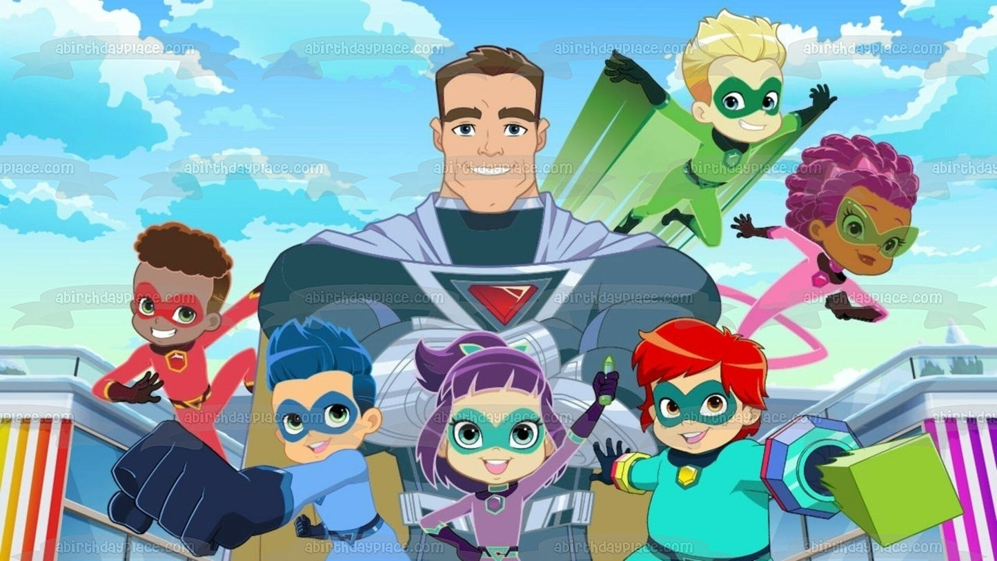 Decorate your Cake with this Stan Lee's Superhero Kindergarten themed Edible Cake Topper Image featuring Billy, Putty, Captain Fantastid, LIn Choi, Vik, Pedro, Jet and Emerson!