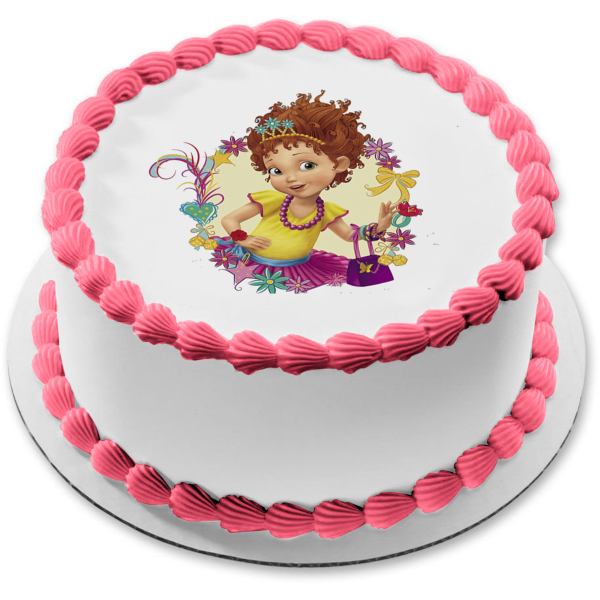 Decorate your Cake with this Fancy Nancy themed Edible Cake Topper Image featuring a Wreath of Flowers!