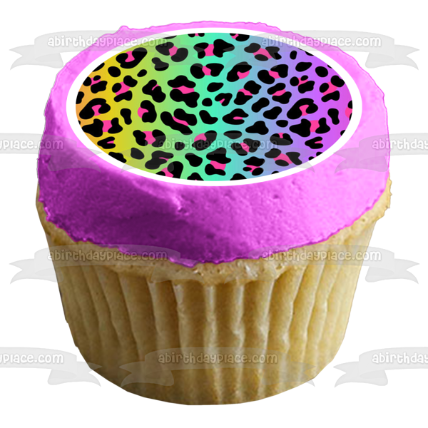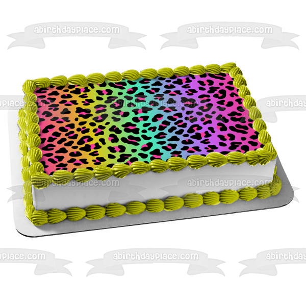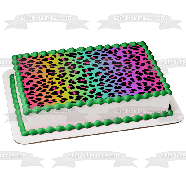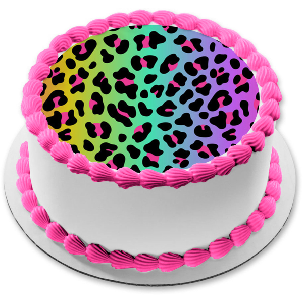 Decorate your Cake with this Rainbow Leopard Print themed Edible Cake Topper Image!