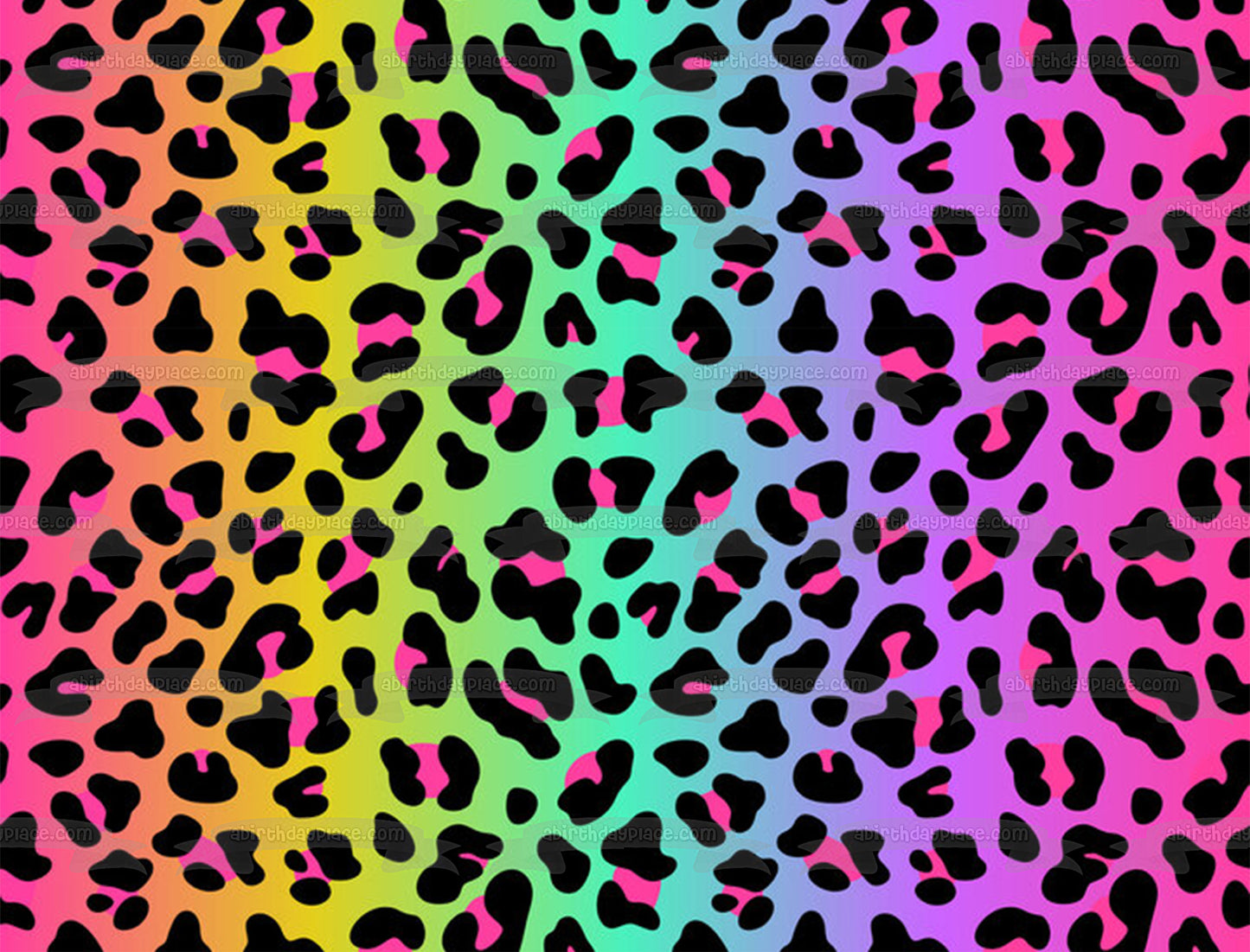 Rainbow Leopard Cheetah Print Pattern Edible Cake Topper Image ABPID55390