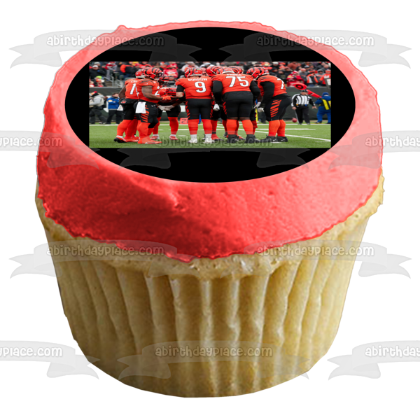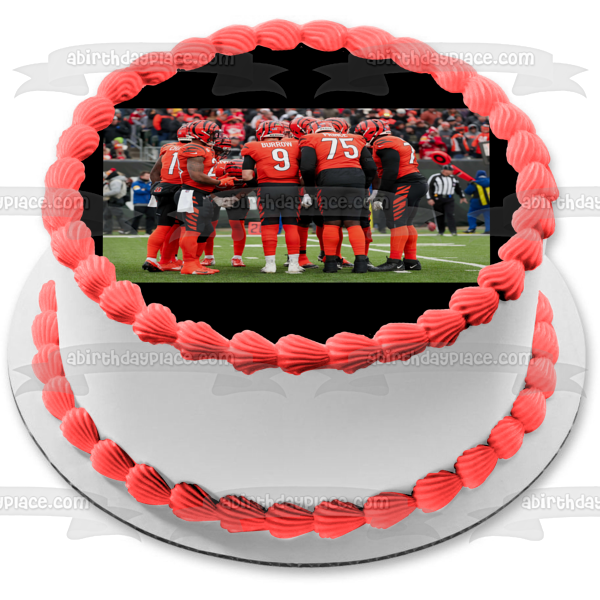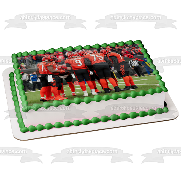 Decorate your Cake with this Super Bowl LVI 2022 themed Edible Cake Topper Image featuring the Cincinnati Bengals in a Team Huddle!